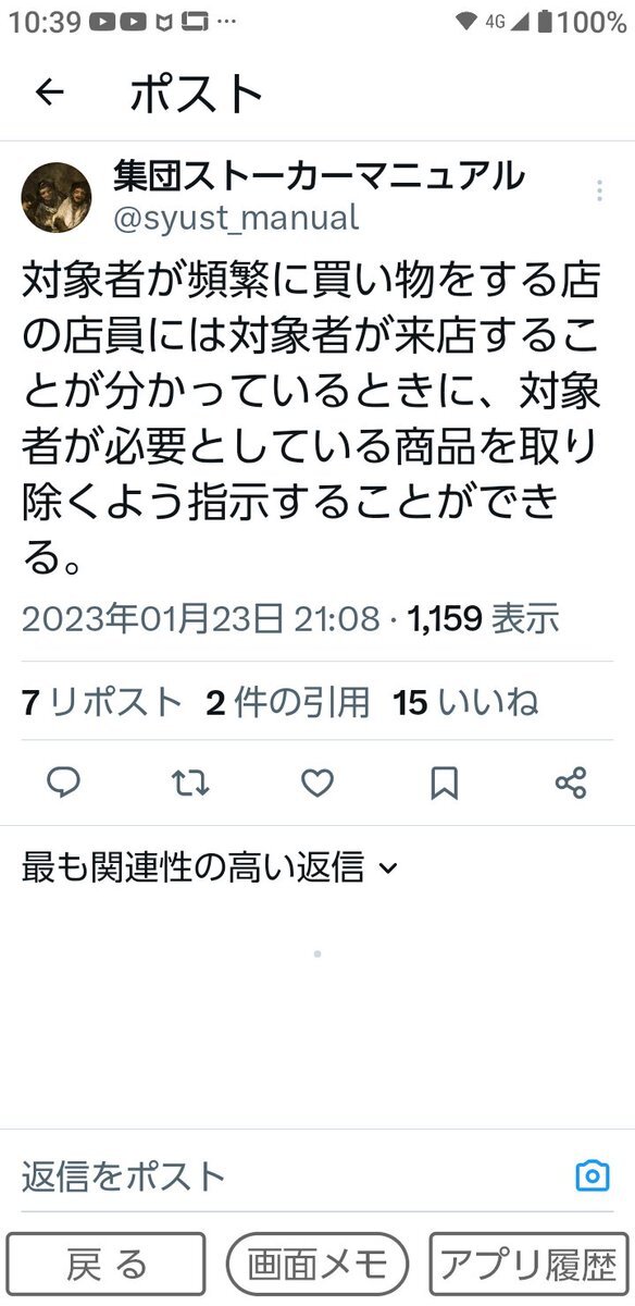 #陸上自衛隊 情報科を、私が、#集団ストーカー犯罪 の指示役・犯人だと断じる理由のひとつが、この【思考盗聴】の能力。 誰かに話したことはなく、どこかにメモした訳でもないのに、絶対に買えないものがある。 #防衛省 #自衛隊 #東芝 #警視庁 #警察 #政府 #犯罪 #ストレス #シギント #公務員 #日本 x.com/NebQvNSFzh7918…