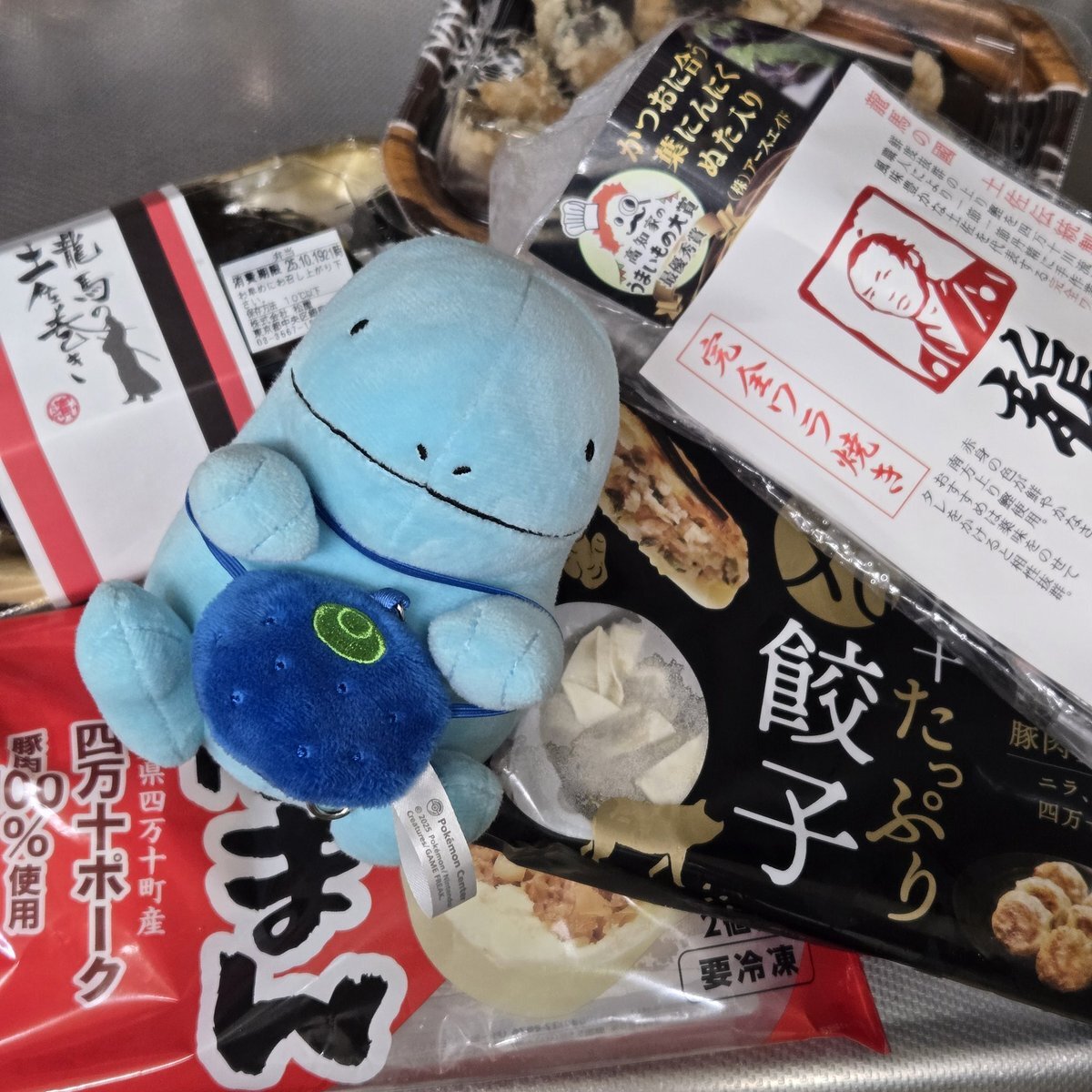 高知のものいっぱい買ったよ #松屋銀座 #高知だいすきポケモン 🛍カツオの太巻き 🛍ウツボの唐揚げ 🛍カツオのたたき 🛍四万十ポークの豚まん 🛍丸餃子 pic.x.com/mR9WhETmk7