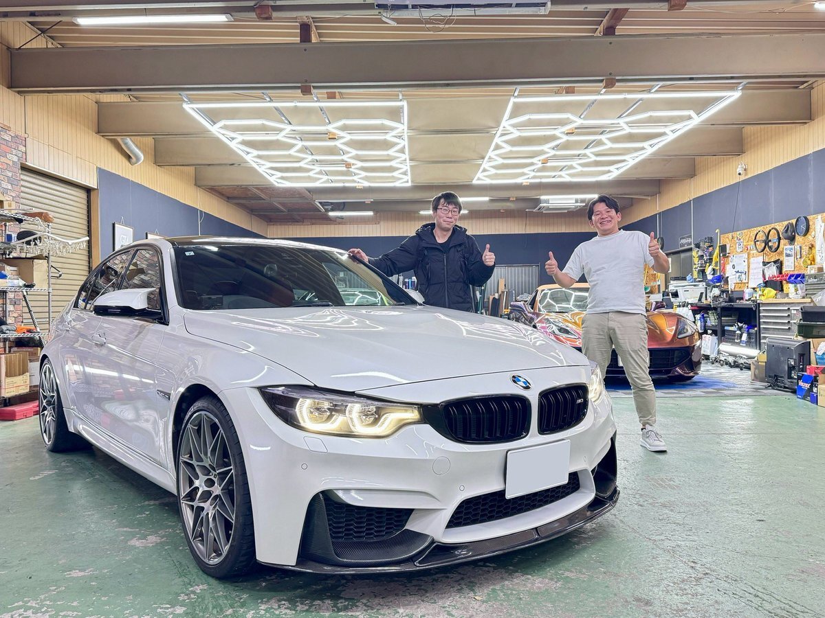 本日当店で販売した‼️ M3コンペティションご納車させて頂きました!😊 カーセンサー最安値で出していましたが、当店でラッピングを施工して頂いたお付き合いの長いお客様に購入して頂きました😉 早速12月に筑波を走るそうで、450馬力を存分に楽しんで頂けるはずです‼️😉