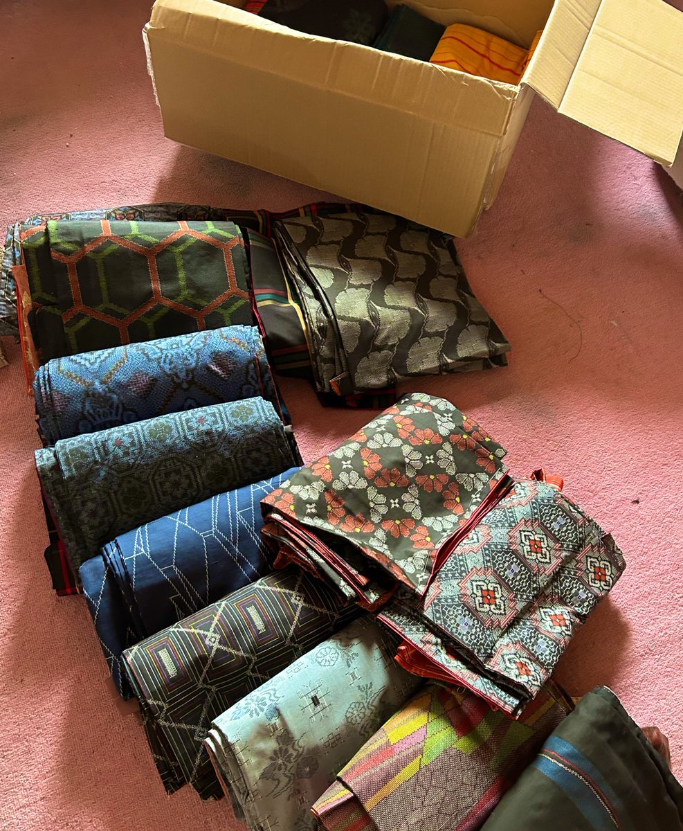 こんにちは月曜日🌞 今週もよろしくお願いします 今日も着物の整理と解体・洗いをすすめていきます♪ 材料だけがたくさんあって とても幸せなんだけど 手が遅いからなぁ 作品に仕上がるまではややしばらくかかります #着物リメイク #果てしない作業 pic.x.com/sG5nyNBx6X