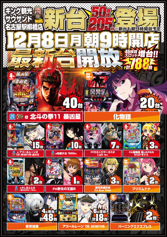 おはようございます🌞 #やなキン です‼️ 本日12月11日(木) ✨朝9時開店✨ 💓ひめのさん来店予定💓 @hime_pachi 💥46枚貸スロット💥 ✨788台へ✨ 新台5⃣0⃣機種2⃣0⃣5⃣台 🆕導入済み🆕 入場は並び順です‼️ 皆様のご来店お待ちしてます😊 #キング #名古屋 #柳橋 pic.x.com/zzMhf2zsfZ