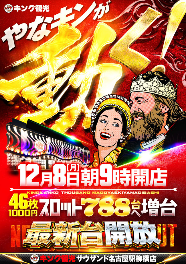 こんばんわ🌙 #やなキン です‼️ 明日12月13日(土) 🌞朝9時開店🌞 ❤️楓ふうあさん来店予定❤️ @kaede_fu_a 💥46枚貸スロット💥 ✨788台へ✨ 新台5⃣0⃣機種2⃣0⃣5⃣台 🆕導入済み🆕 入場は並び順です‼️ 皆様のご来店お待ちしてます😊 #名古屋 #キング #柳橋 pic.x.com/KfQ6mBnV6v