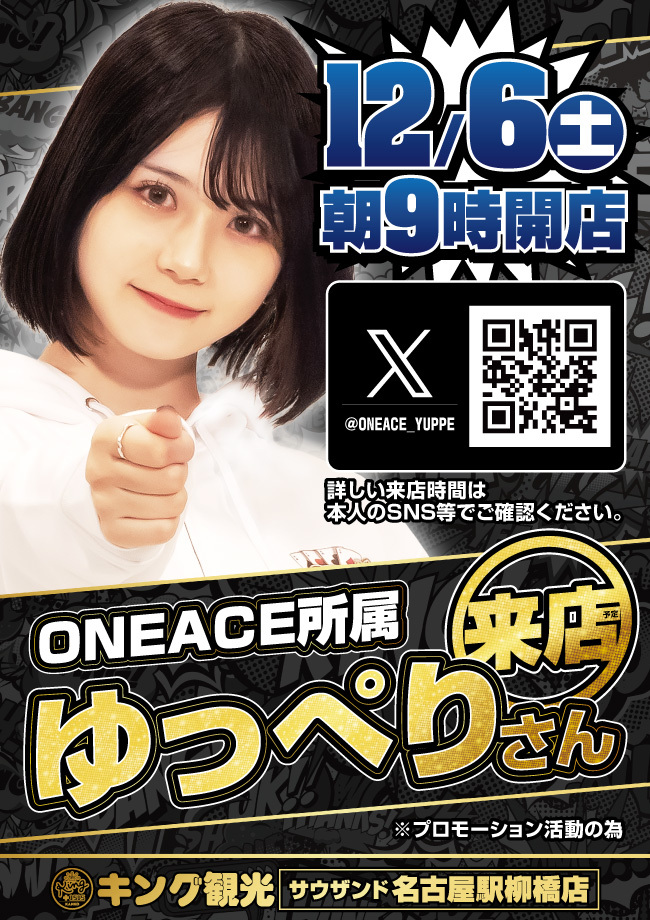 おはようございます🌞 #やなキン です‼️ 本日12月6日(土) ✨朝9時開店✨ オフミー 💥グラレポ決戦取材💥 🧍♂️賞品W入荷予定🥤 💓ゆっぺりさん来店予定💓 @ONEACE_YUPPE 入場は並び順です‼️ 皆様のご来店お待ちしてます😊 #名古屋 #キング #柳橋 pic.x.com/lWk8U8yvKL