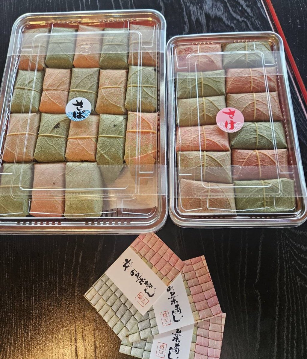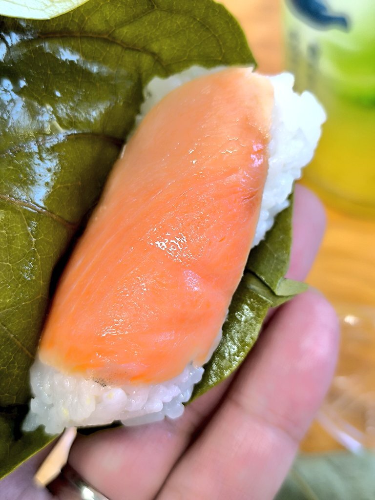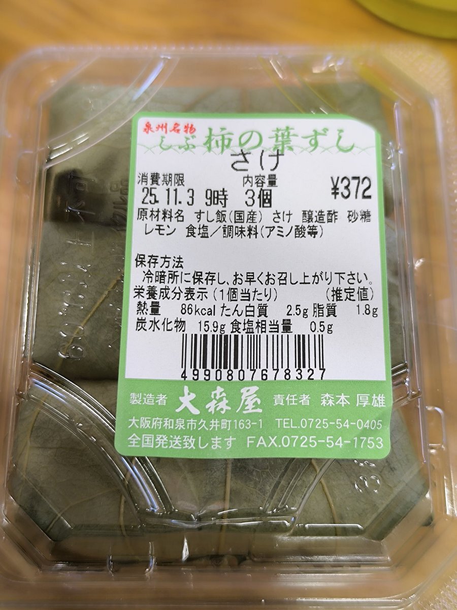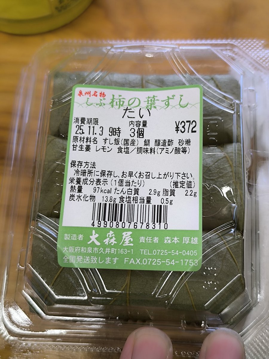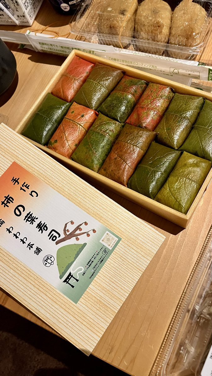 #大森屋 #柿の葉寿司 #葉菜の森 で販売してる柿の葉寿司。大森屋さんも近くにあります。保存が利くよう柿の葉で包んだ寿司。奈良が有名だけど、泉州にもある。駅で販売してるのは高価だけど、大森屋さんのはリーズナブルで種類多め。やや値上げしたけど。。 久しぶりに食べたけどとても美味しかった✨ pic.x.com/X1yAz0d5Tr