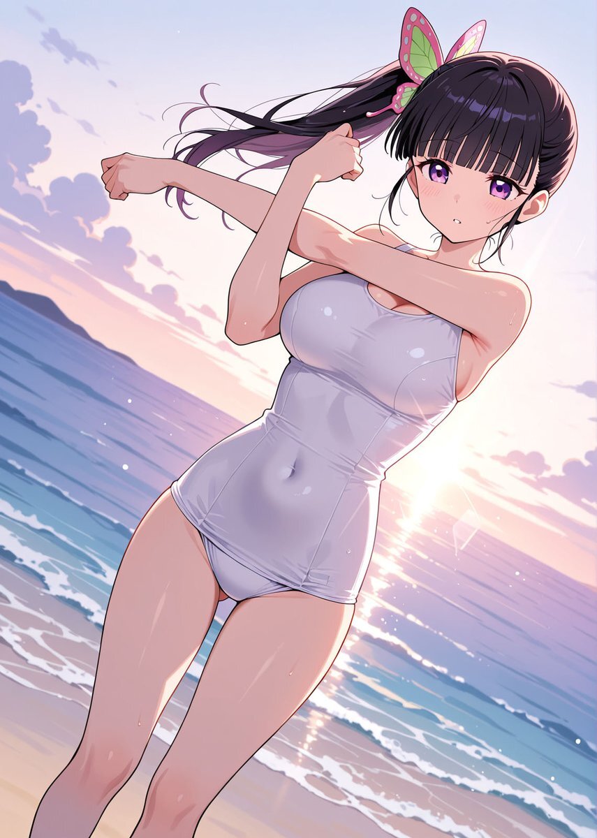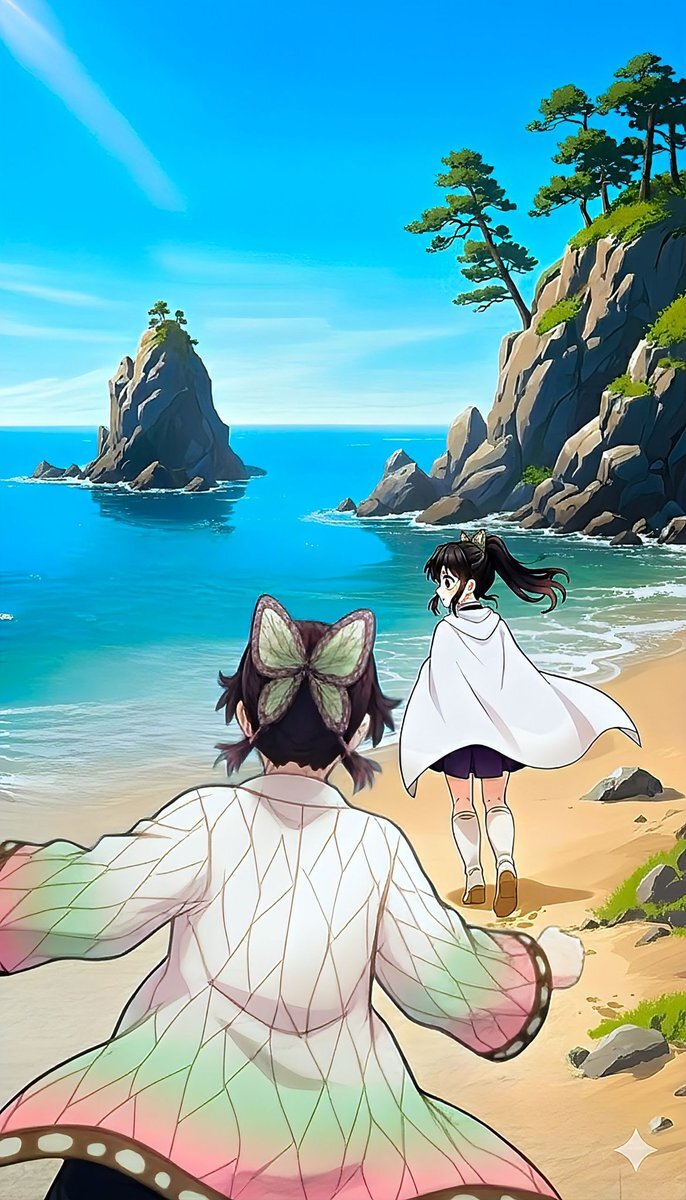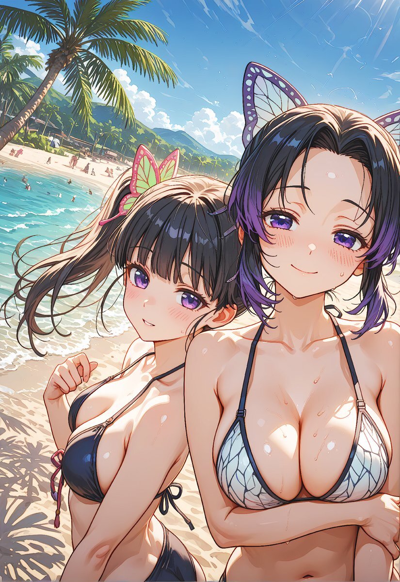 鬼滅の刃 胡蝶しのぶ & 栗花落カナヲ | Shinobu Kocho & Kanao Tsuyuri ビーチで水着姿の二人が寄り添う一枚 AI-generated fanart of Shinobu Kocho and Kanao Tsuyuri from Demon Slayer. They are posing together in swimsuits at a bright tropical beach #鬼滅の刃 #胡蝶しのぶ #栗花落カナヲ pic.x.com/MkVzr5jDnB