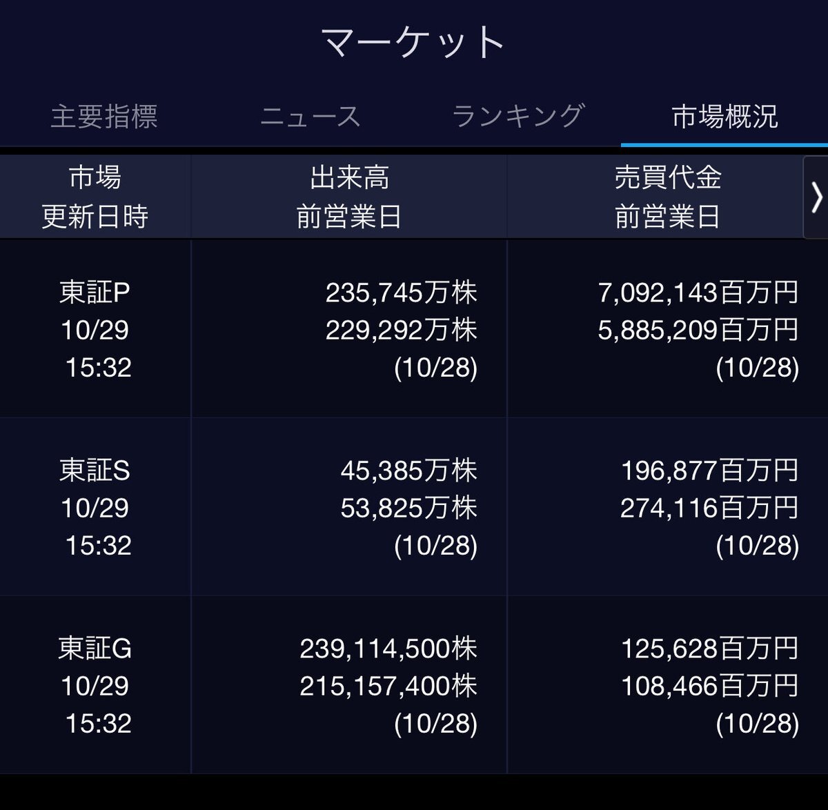 10/29(水)引け乙です🌾 🇯🇵NK 51,307.65🔺+1088.47 TOPIX 3,278.24🔹-7.63 グロース 703.43🔹-18.95 🔶売買代金 🔼値上がり数% P🔸7,092,143百万円🔼12% S🔸 196,877百万円🔼17% G🔸 125,628百万円🔼12% 騰落レシオ96.02⬜️⬜️⬜️⬜️ #日本株 #株トレード #株式市場 pic.x.com/EQe7HHeaLA