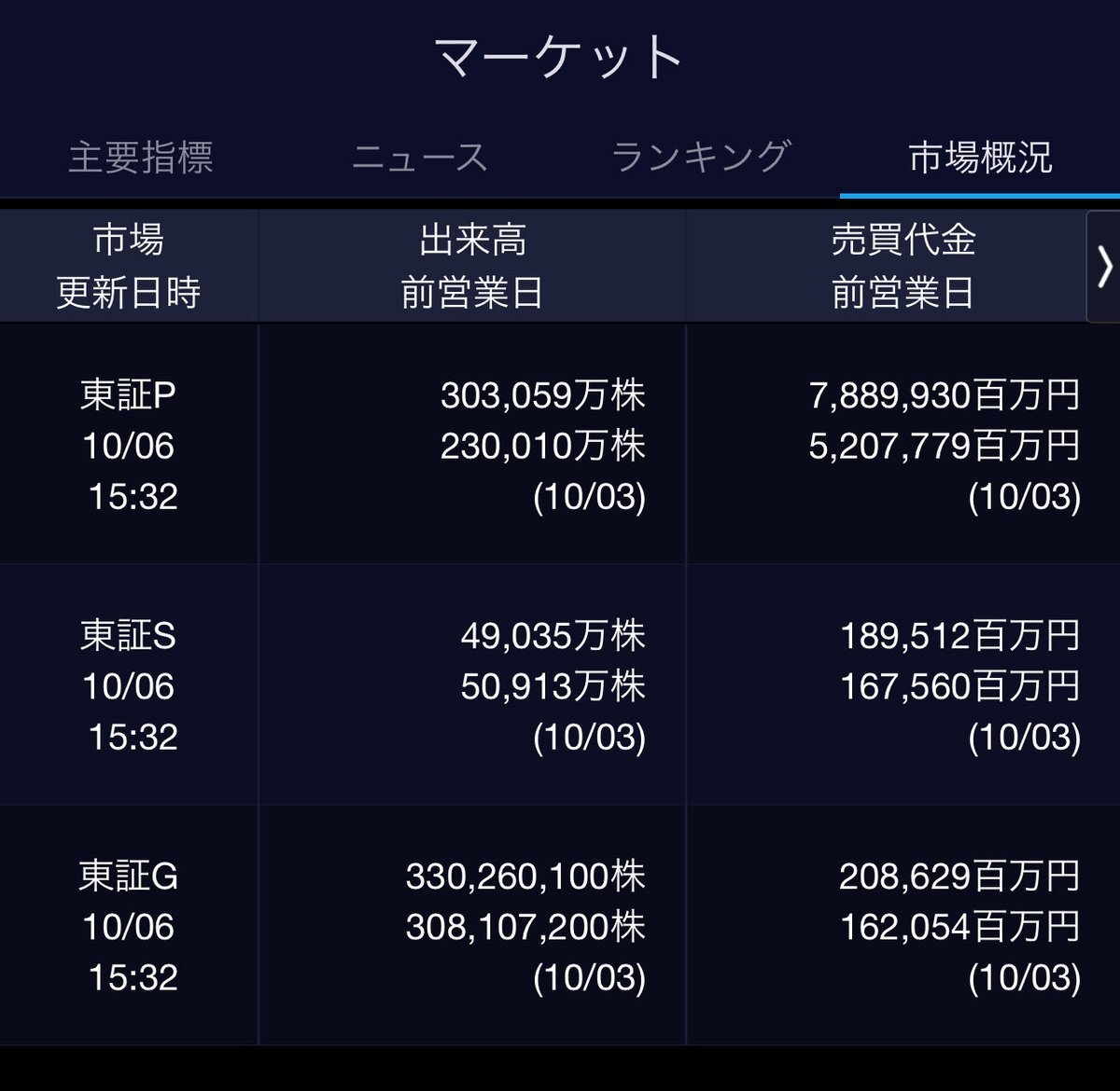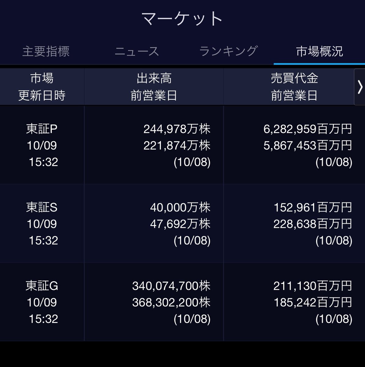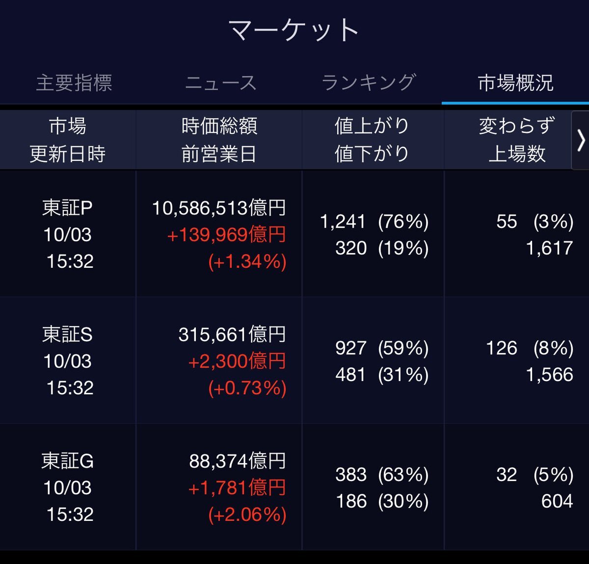 10/6(月)引け乙です🍄 🇯🇵NK 47,944.76🔺+2175.26 TOPIX 3,226.06🔺+96.89 グロース 751.80🔺+20.66 🔶売買代金 🔼値上がり数% P🔸7,889,930百万円🔼90% S🔸 189,512百万円🔼67% G🔸 208,629百万円🔼64% 騰落レシオ109.28⬜️⬜️⬜️🟩 #日本株 #株トレード #株式市場 pic.x.com/hZM7qUxEdZ