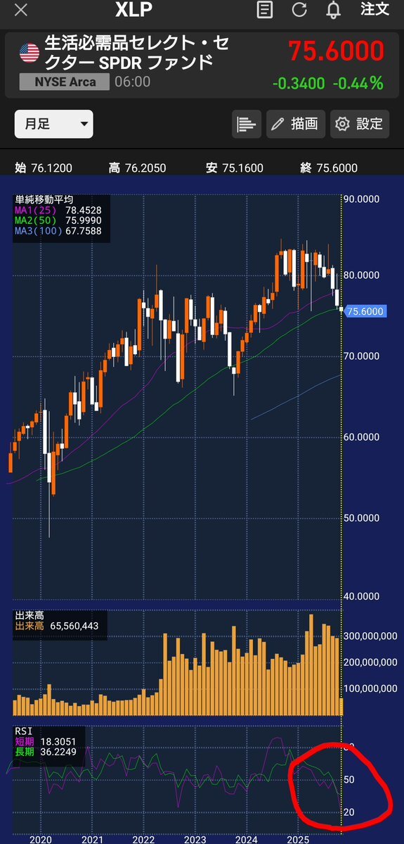 今日、米国生活必需品セクターETF(VDC·XLP)を購入します。 購入理由 ・現金を持っていても腐らせるだけ ・RSI日足・週足・月足ともに売られすぎ 100万円ほど年末まで新NISAの関係で短期投資ですが特定口座で購入したいと思います💹 #株式投資 #株トレード pic.x.com/99Ww0onamV