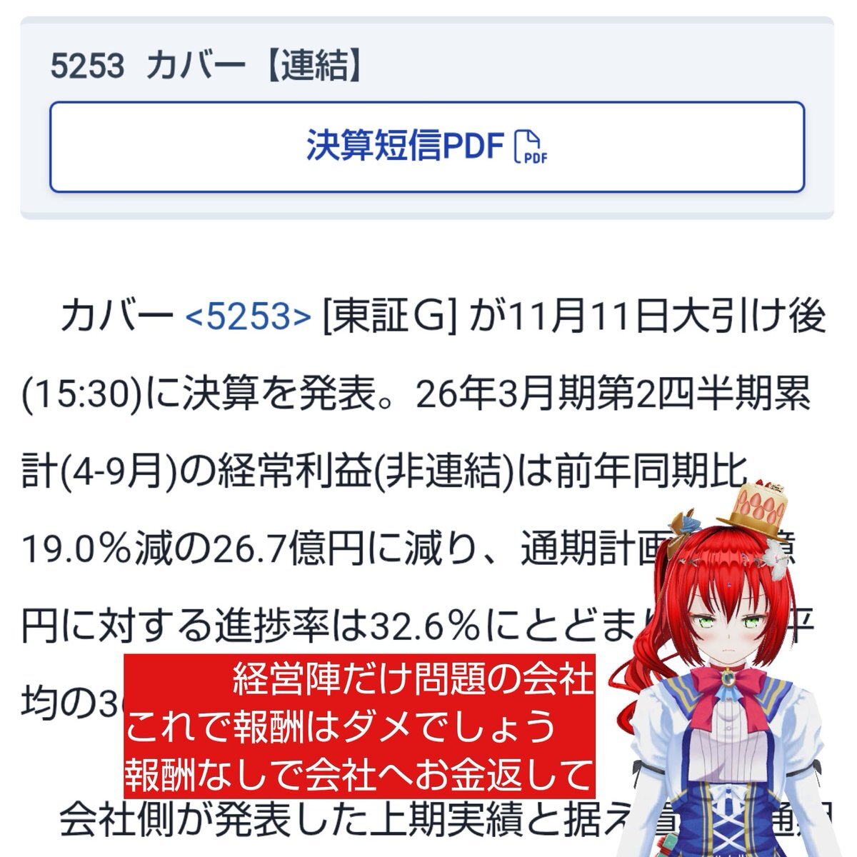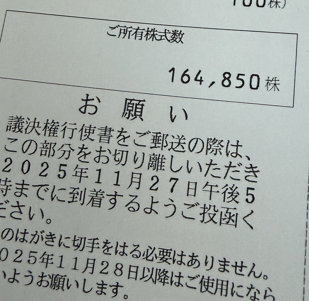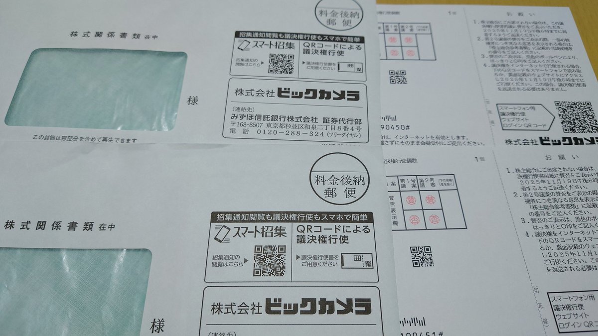 #株主総会 日本BS ビックカメラの子会社 進め方に対して「意義ありー」の声で始まり おお、コレは血の雨が降る退場付き総会か?と思ったが普通に終わりました。 1135かな?約95分 結論は安すぎて売却する気もなく 買い増しする気も起きないです 微妙な株数を放置する結論 pic.x.com/13WbPFKCsH x.com/tosakoi1/statu…