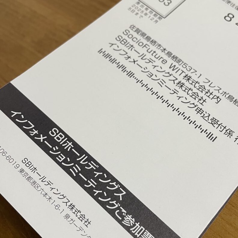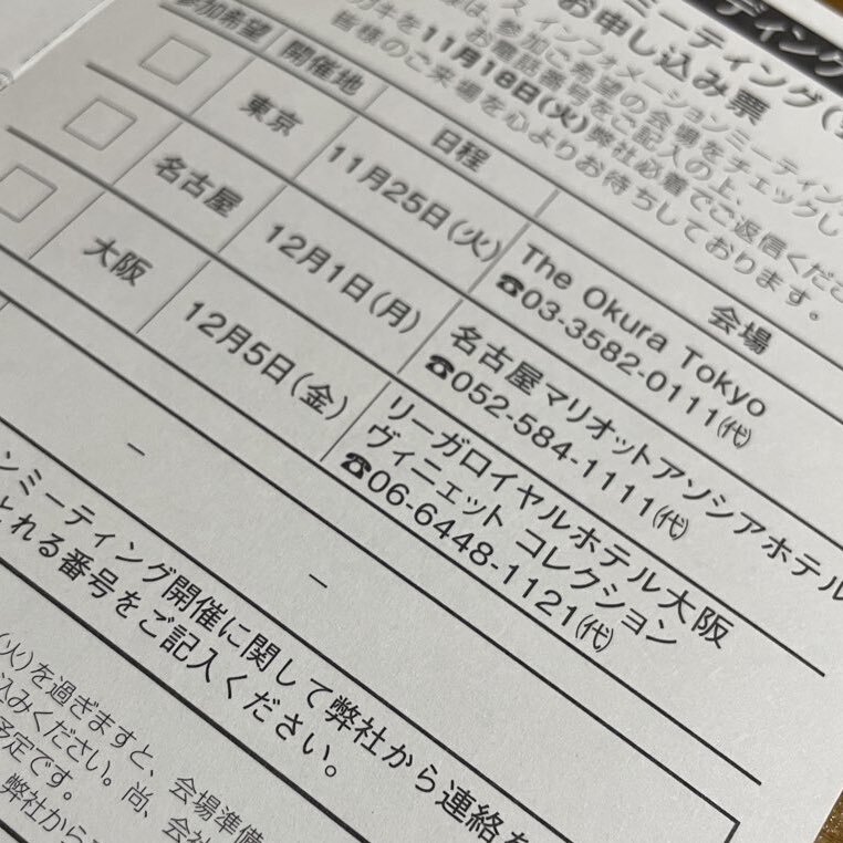 12月のSBIホールディングスのインフォメーションミーティングの申し込み完了📲 冬の #総会ジャーニー がまた始まるで🗒️ 会場の雰囲気とかお土産、淡々とレポートしていく予定👀どこの会場に行くかはお楽しみに〜🚃 申し込みは11月18日まで🗓️お早めに #株主総会 #SBIホールディングス pic.x.com/B9MJYAp85U
