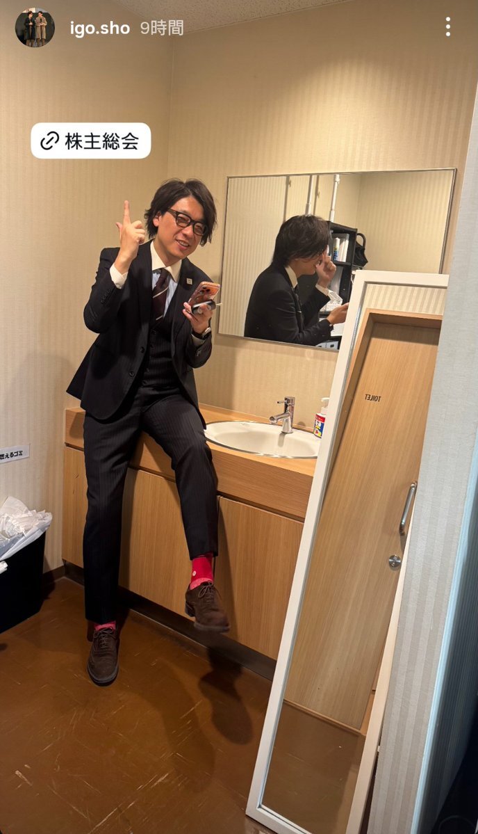 「テンション上げて!」で写真撮ってください。 「どーもー囲碁将棋ですー」から一緒にお願いしてもらっていいですか、すみません …と、あつかましいお願いもかかわらず一緒にやってくれて本当にありがとうございました。 3人目の囲碁将棋になれました(喜)。ヤッタ #囲碁将棋 #株主総会 #イゴガレ pic.x.com/c2R2fCaJDJ