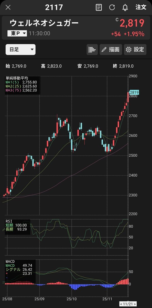 【2117】ウェルネオシュガー 最高値更新し続けております! 【11/21 11:30現在】 株価:2819円 優待(100株以上):1000円相当のグループ製品(砂糖など) 3月権利確定 ※3年以上保有で2000円相当に! 配当:1株108円 (利回り3.83%) 配当方針:連結配当性向60% or DOE3% どちらか大きい方 #株投資 pic.x.com/0hlP84C6Pz