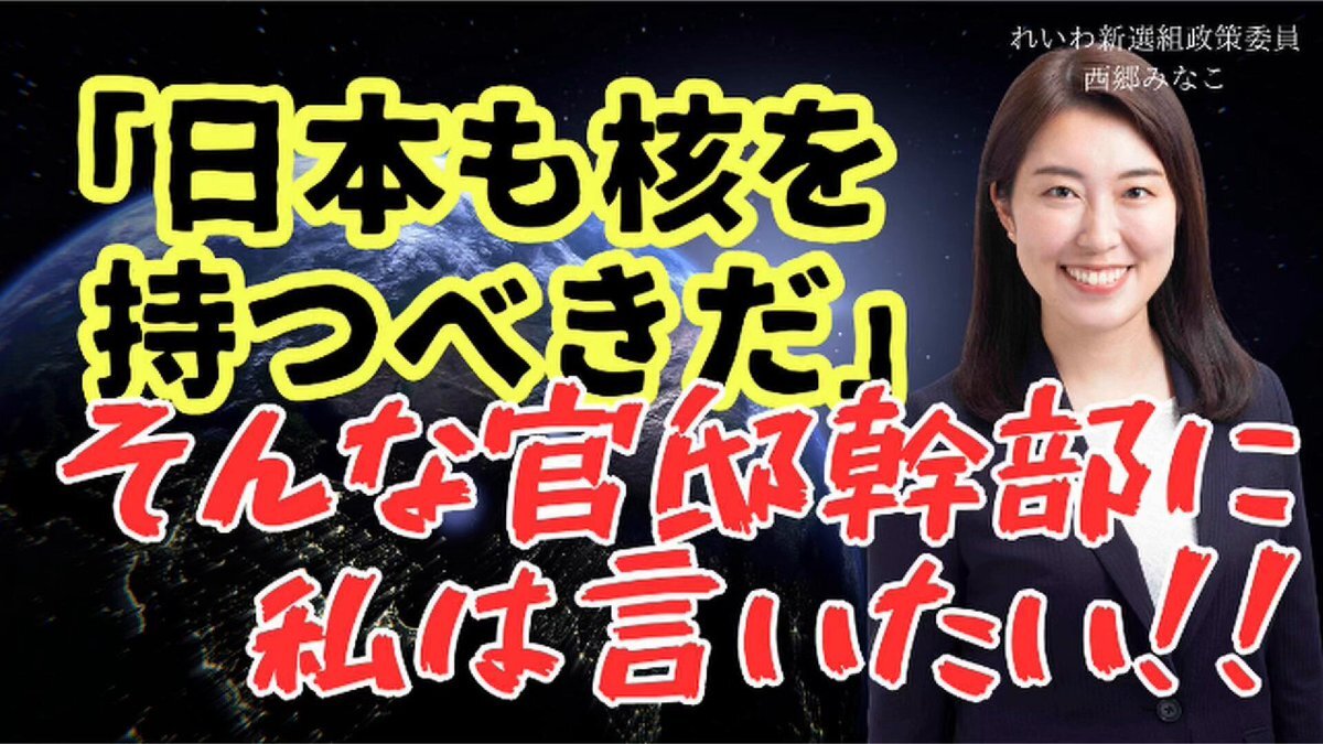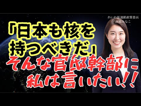 首相官邸の幹部が「日本は核兵器を持つべきだ」と発言したそうですが、高市政権は、台湾発言にしろユルユルすぎません?? いい加減にしてほしいです。 #核兵器禁止条約 #れいわ新選組 #西郷みなこ #NEWS375