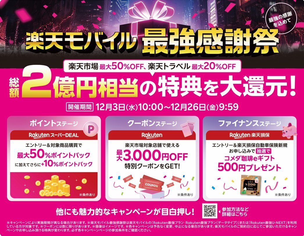 🌸楽天モバイルへ乗り換えるなら今がお得🌸 社員紹介からのお申込みでMNP14,000ポイント、新規契約7,000ポイント獲得のチャンス! 12/26まで開催中の楽天モバイル最強感謝祭にも参加できます✨ 楽天ポイントを使って節約しましょう💰 お申し込みはこちら➡️r10.to/hNDZiD?openExt… #格安SIM #ポイ活 pic.x.com/2zv9oKYaWM