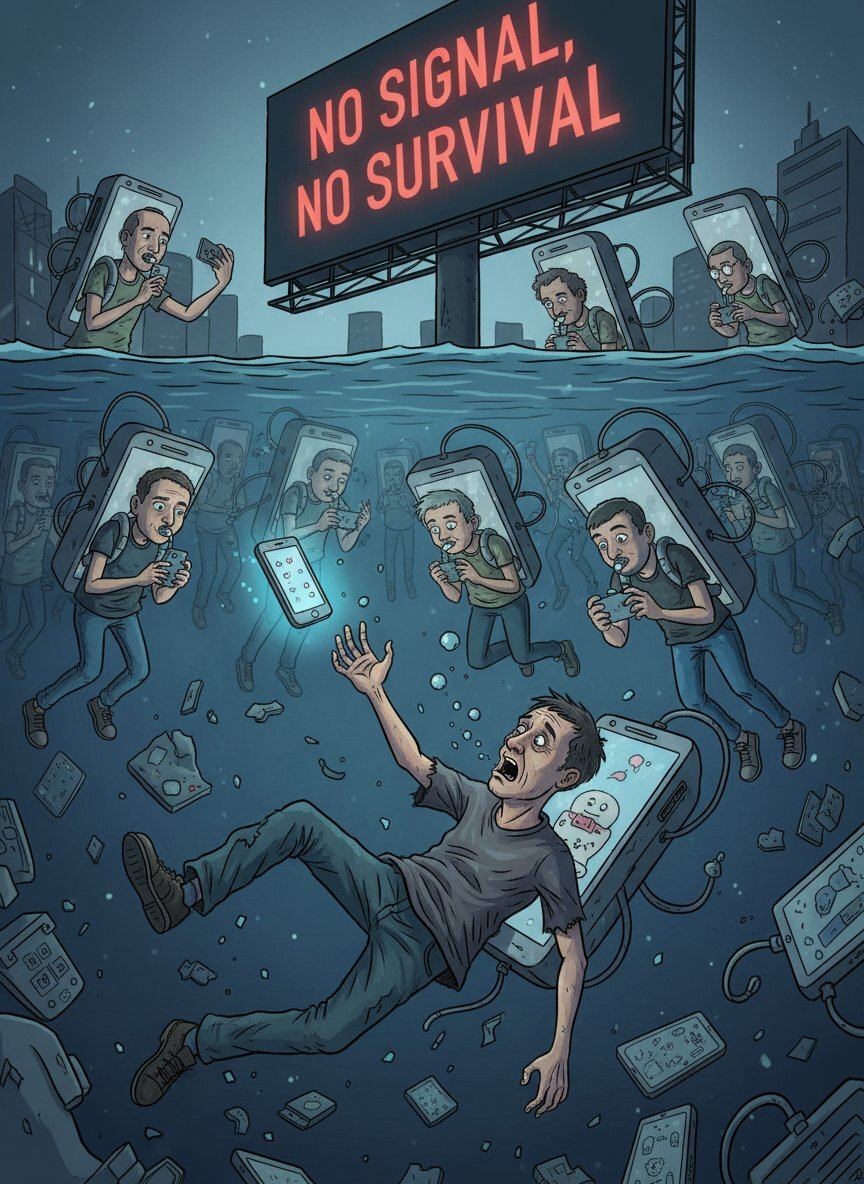 Title: スマホ依存 smartphone addiction #オリジナル風刺画EP11 今回の風刺画のテーマは「スマホ依存」 スマホを酸素ボンベに例えて、スマホをがないと不安で溺れてしまう現代を表現しました! 気に入ったら いいね・フォロー・コメントもらえるとうれしいです✨ #イラスト #格差社会 #satireart pic.x.com/Nlds6qVY07