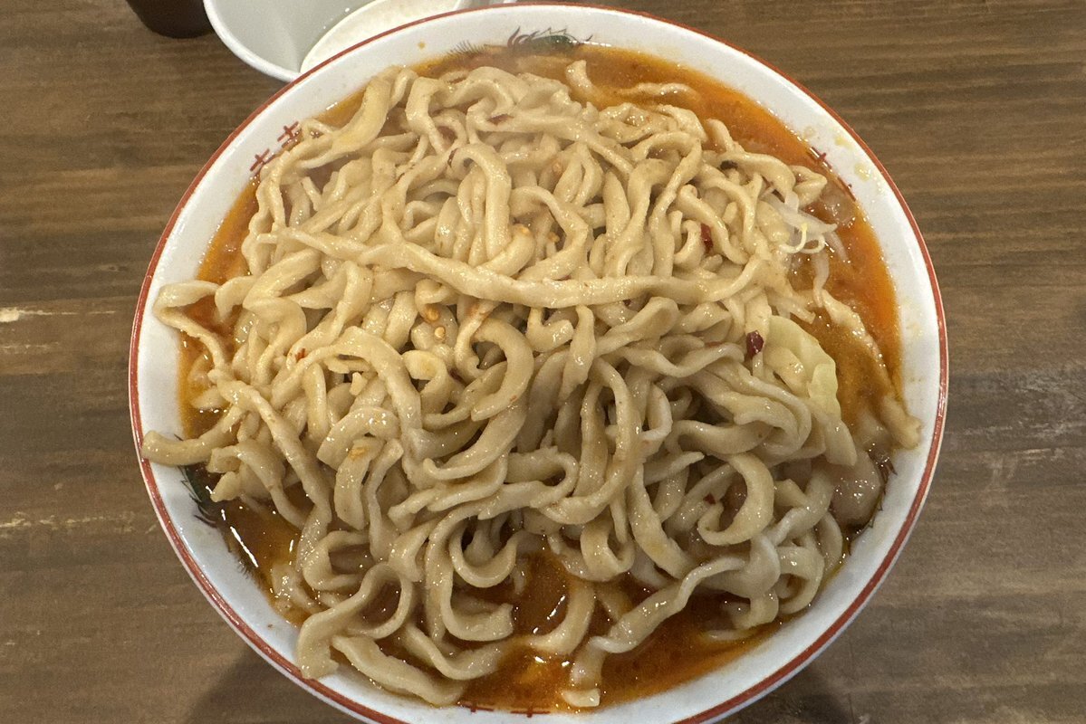 男気らーめん アカギ桐生本店 #桐生市 辛いラーメン(300g)+つけたま A 週末の19時台😆ところが忘年会シーズンなのか?外待ち5番目🤩 香りもありつつ若干辛みが強めのスープでこの配合も美味い😋 何より麺がタカメな茹で加減でアカギの強いスープにはこのぐらいが好きです🥰 ご馳走様でした🙏 pic.x.com/uxB4Eime1m