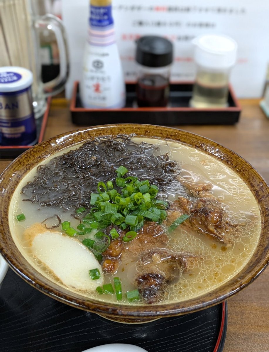 沖縄そば『南風』🏄️🏄️🌴🌴 ソーキそばにもずくをトッピングしました✨️桐生市でソーキそばが食べれることに幸せ🤸♂️です😊ここの🍩サーターアンダギー、島らっきょうの餃子🥟も美味いです😊 #桐生市 #ラーメン #沖縄料理 pic.x.com/DqSxITy4zG