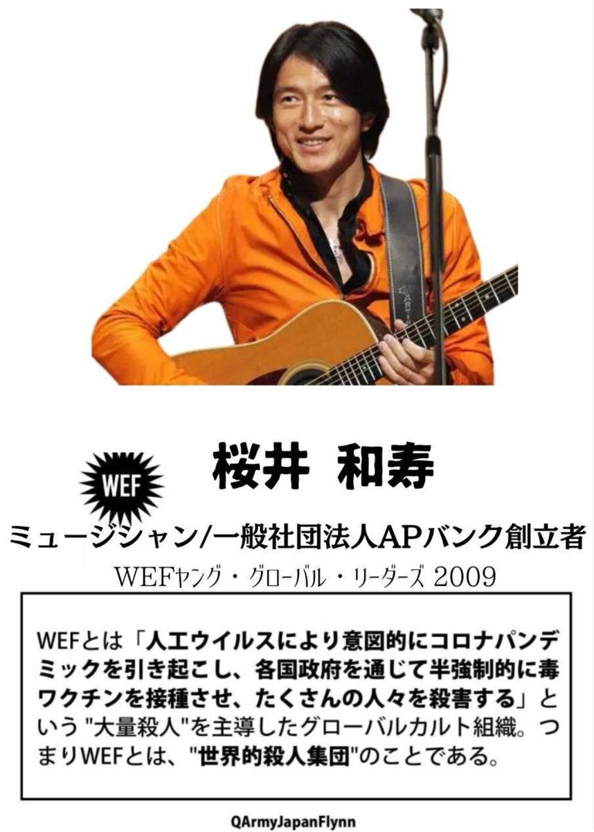 ⚠️危険⚠️ 拡散希望します❗️ 53. 桜井和寿 (ミュージシャン / APバンク創立者) ヤンググローバルリーダーズ2009 #WEF #世界経済フォーラム #ダボス会議 #人564 #薩人鬼 #全匹9除 #納税拒否 #ミュージシャン #ミスターチルドレン #APバンク #ジュビロ磐田研究会 #桜井和寿 #QAJF pic.x.com/kSwWjFoam4 x.com/ALOHA1717Q/sta…