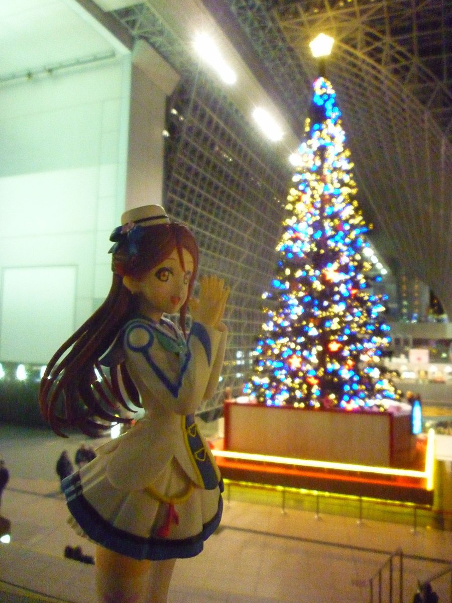 6年前の2019年まで毎年見られた京都駅の冬の風物詩である巨大クリスマスツリー、コロナ禍以降は大階段のイルミネーションの演出で見られる模様。 #おもちゃ撮影会 『冬』 #フィギュア野外撮影 #桜内梨子 #ラブライブサンシャイン pic.x.com/cQeREWV6uB