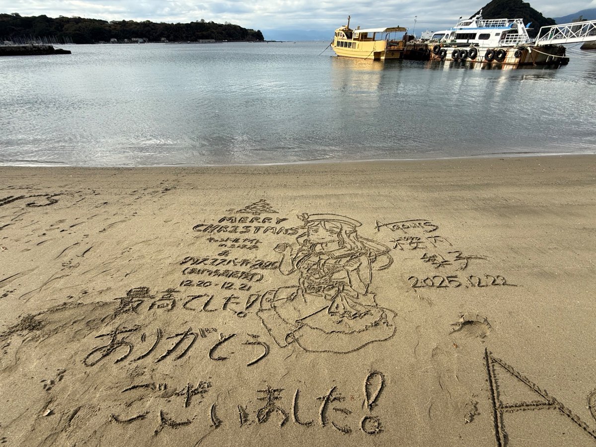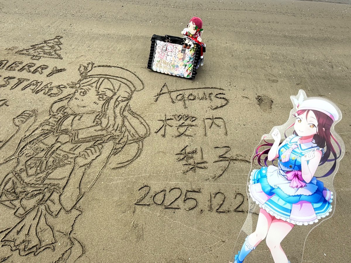 今日も大好きな三津浜に来れて✨ 帰る前に推し事も出来て満足😊✨✍️ ありがとうございました☺️ 🌸三津浜で見てくれた方いるかな? #浦の星砂浜美術部 #三津浜アート #桜内梨子 pic.x.com/fCGi62sLRW