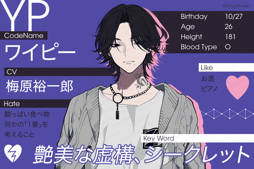 【𝐂𝐡𝐚𝐫𝐚𝐜𝐭𝐞𝐫】 CodeName 🥃ワイピー CV #梅原裕一郎 Team BAD SKUNK(バスカ) #GSおさらいウィーク 開催中✶ 無料公開中のボイスドラマもCHECK☑️ ⇉ youtu.be/Fp8Ruxt_ZI8 Song➵ youtu.be/UtvdAL69veE?li… Character➵ gray-sheep.com/character/yp/ #グレシプ pic.x.com/3kbgKQI1aT