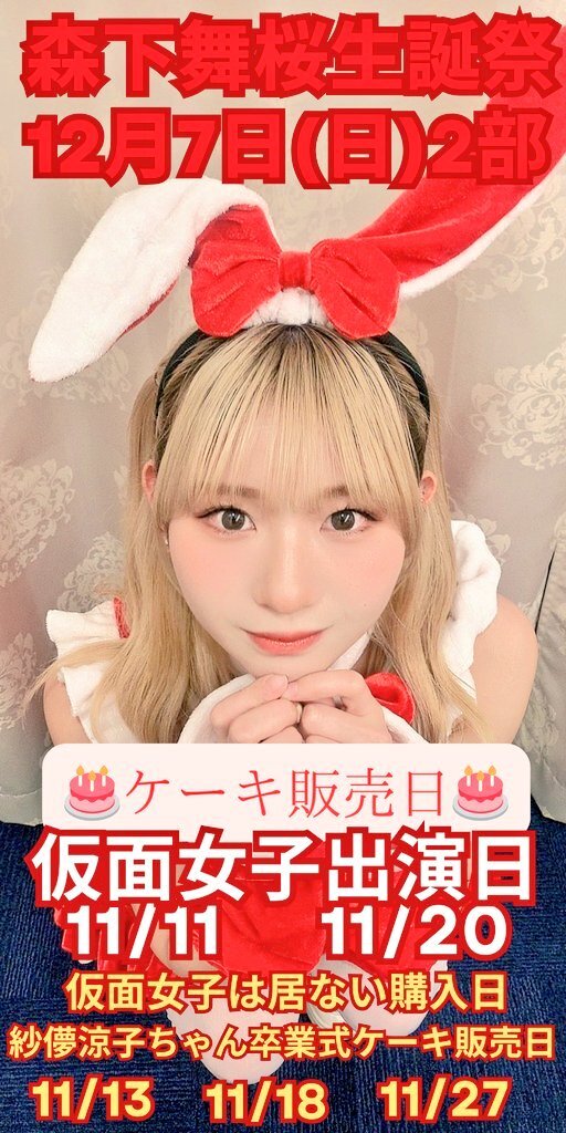 毎日まおぴ 今日、仮面女子の出演はないですが、劇場にて生誕祭ケーキ販売しています。 #森下舞桜 #仮面女子 #赤仮面 lit.link/1111maopicha pic.x.com/xLqqKVPZB1