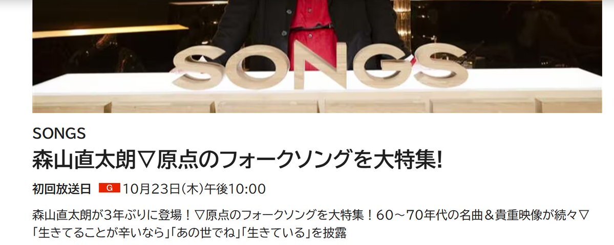 10.23放送NHK音楽番組「SONGS」ゲスト発表 ggtnews.net/articles/mvY7C #SONGS #森山直太朗