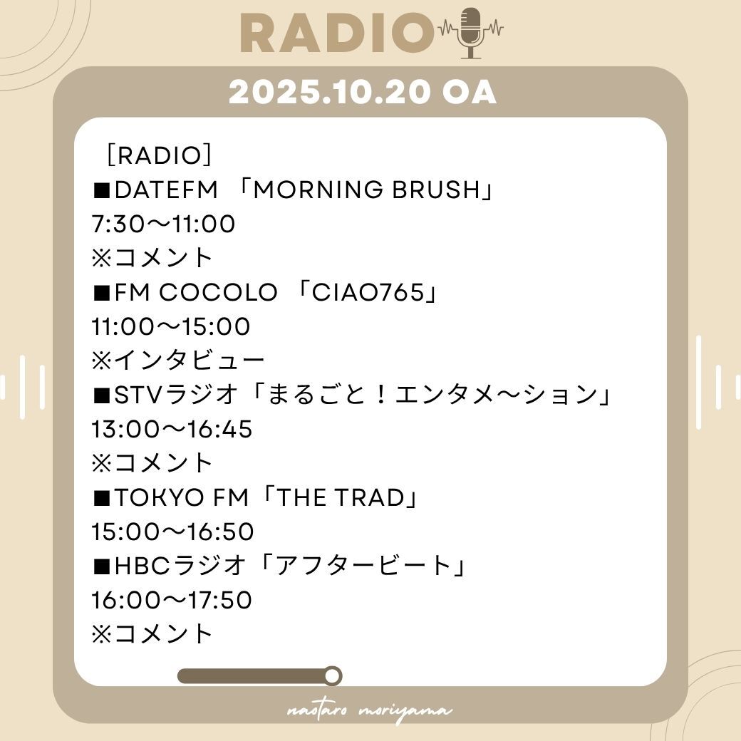 明日10月20日(月)は 📻ラジオコメントに.. 📺テレビに... 📖雑誌に... と情報もりだくさんです😊 ぜひ、✅してみてくださいね! OAスケジュールは森山直太朗公式サイトまで🎶 naotaro.com/schedule/index… #森山直太朗 #あの世でね #弓弦葉 #Yeeeehaaaaw pic.x.com/vAGo0lQfdD