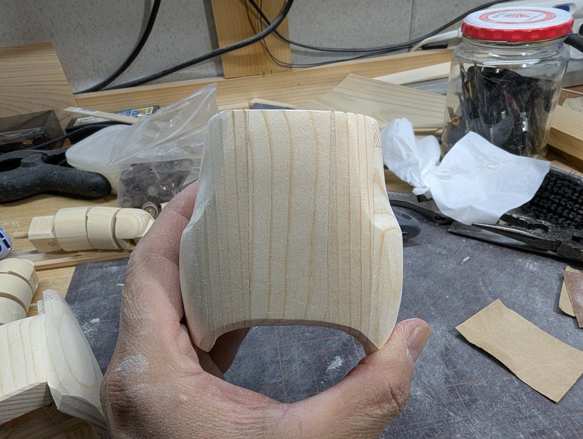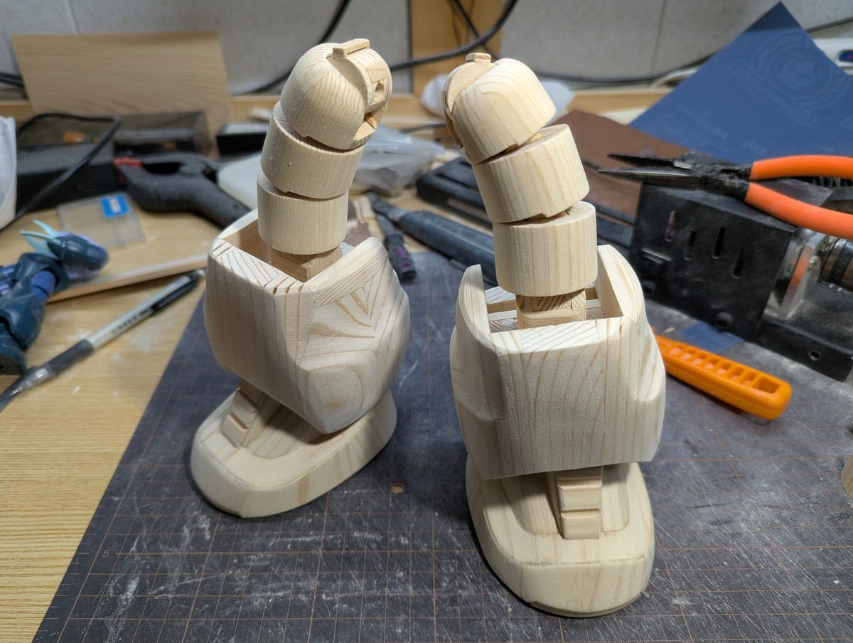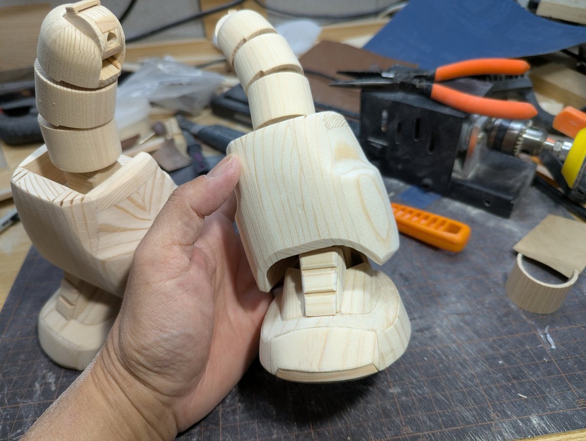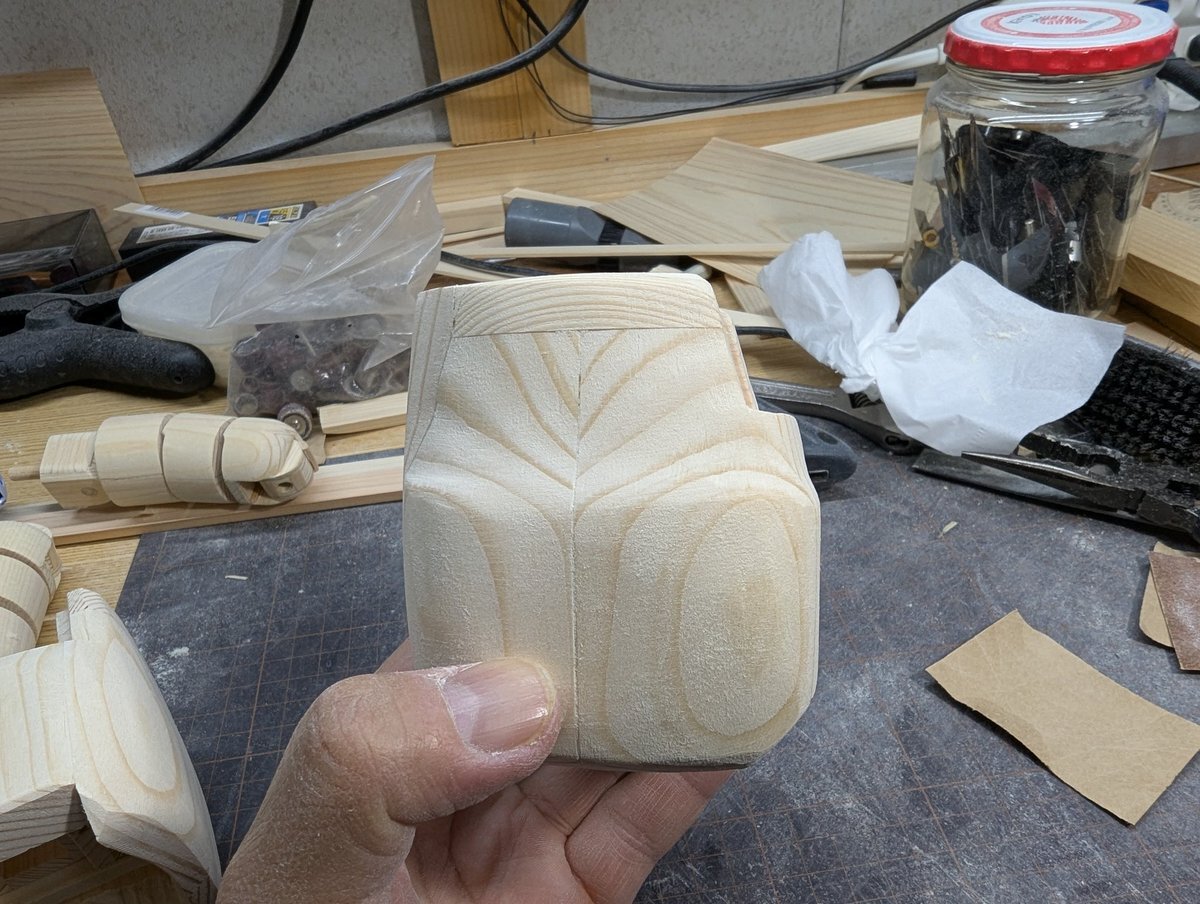ズゴック進捗11月19日 ほぼ形状が確定できました。 後は膝当てとディテールアップ予定です。もう少しヤスリをあてて削る作業をもう少し続けます。 #木工 #模型 #ズゴック pic.x.com/Jz8JDknMzT