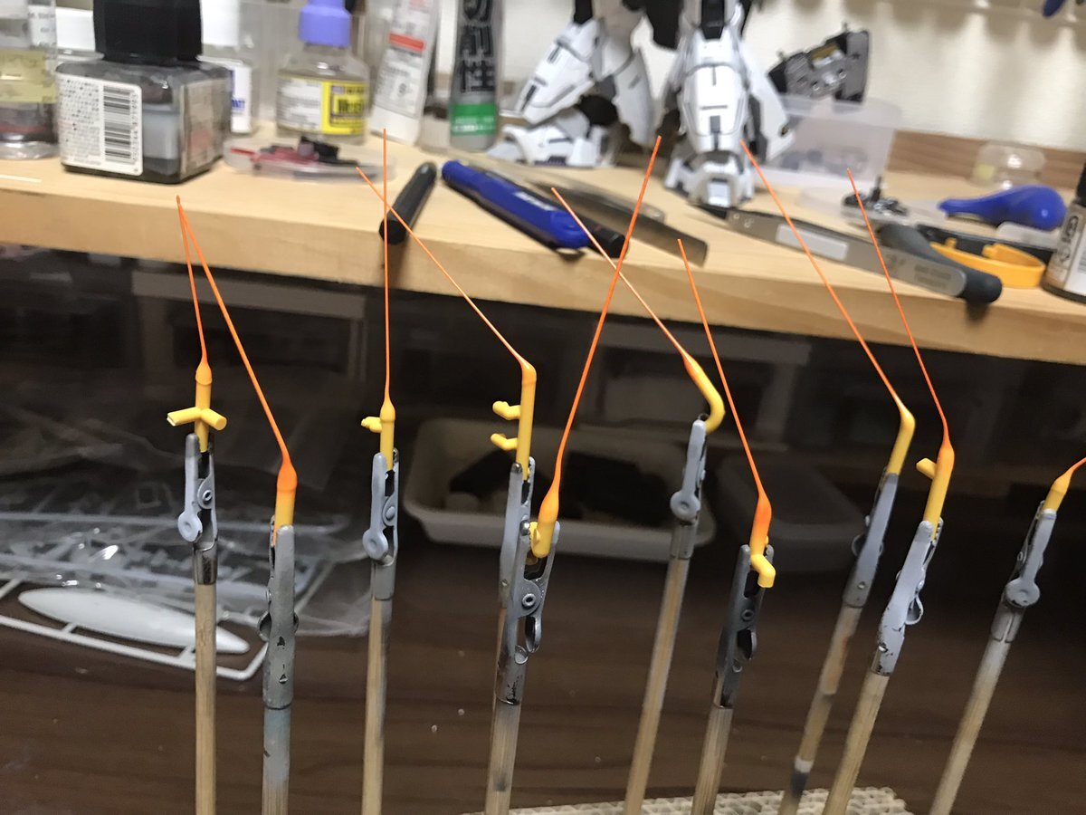 <MG サザビーver.ka> #ガンプラ #サザビー #模型 レッドチップならぬオレンジチップ。 黄色の伸ばしランナーに蛍光オレンジ塗装。 両端が黄色に。 良い感じになると思う! pic.x.com/5EXsV8R8yW