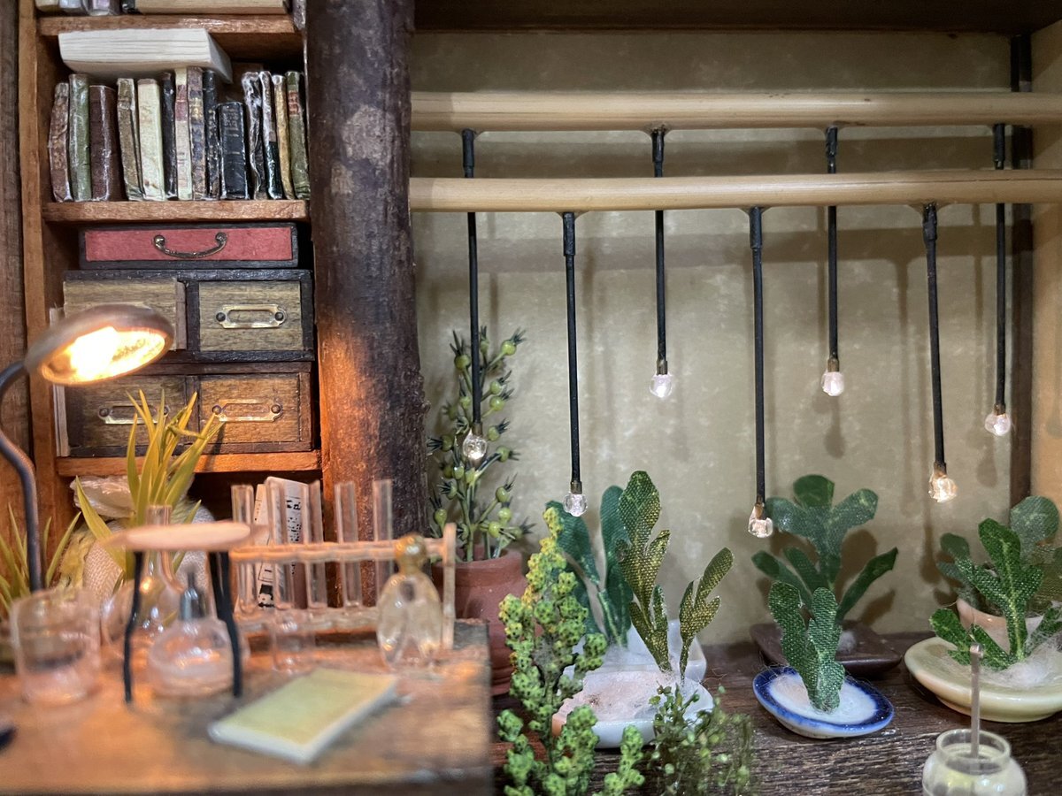 7つの豆電球の灯る大根畠は少し光量を落とし、ほんのりと照らすようにしました。その他二助の部屋は大きくリニューアルしましたが、具体的な変更箇所はいちいち述べるのが煩瑣である(笑)。 #尾崎翠 #第七官界彷徨 #模型 #ミニチュア #情景作品 #渋谷クラフト倶楽部 #はがいちよう #芳賀一洋 pic.x.com/XOgzy8M1eK