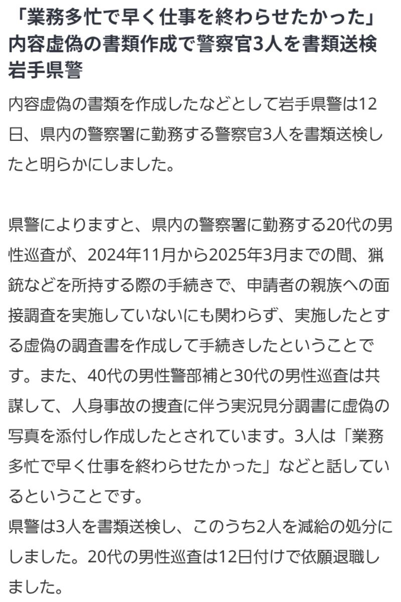 はい やりましたね 20代巡査は依願退職 巡査長、警部補 まだ 在籍し続けるのかよ #岩手県警 の #職質 は 勝手に虚偽の書類作られるかもしれないので 絶対に 受けません 任意なんでね 任意で協力して 虚偽の書類作られるたら コワイので 拒否します それも #権利 なんで pic.x.com/CRAM1HbdXI
