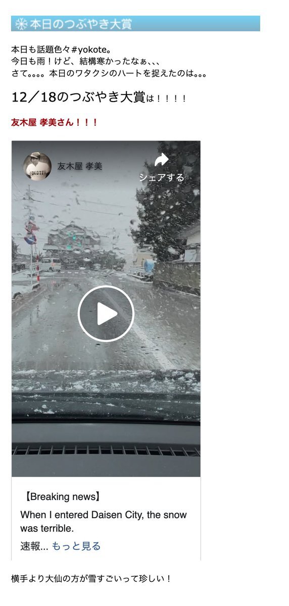 大仙の方が横手より降ってるって珍しい! 横手は全然降らなかったもんねぇ、、、 #yokotter スタッフブログ更新!人気ブログランキングボタンをポチックリックよろしくです!! acotan28.seesaa.net #yokote #y_blog #横手 #秋田 #asago pic.x.com/f8waokdb8F