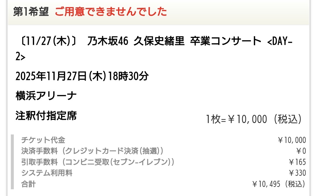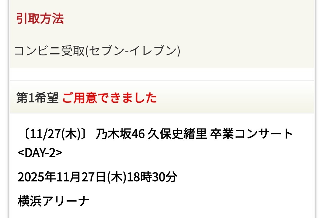 絶対無理と思ってた久保史緒里卒コンの一般抽選が当たってた‼️これはANN後任の井上和様のご利益だろうか。ありがたすぎる😭😭😭 #久保史緒里卒コン当落 #乃木坂46 #井上和 #横浜アリーナ pic.x.com/IiGuVS41tt