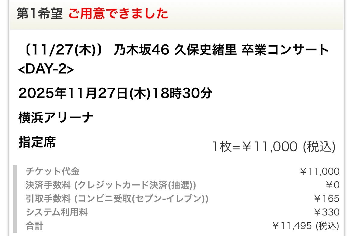 #久保史緒里卒業コンサート 一般(ラストチャンス)で DAY2当選🎯頂きました🙏 ヨシ💪 ヤッター😆 もう諦めてましたから めちゃくちゃ嬉しいです😭 しっかりと しーちゃんを 見届けてきます🙇♂️🕊️ #横浜アリーナ #久保史緒里 pic.x.com/5vTwgUnc6Y