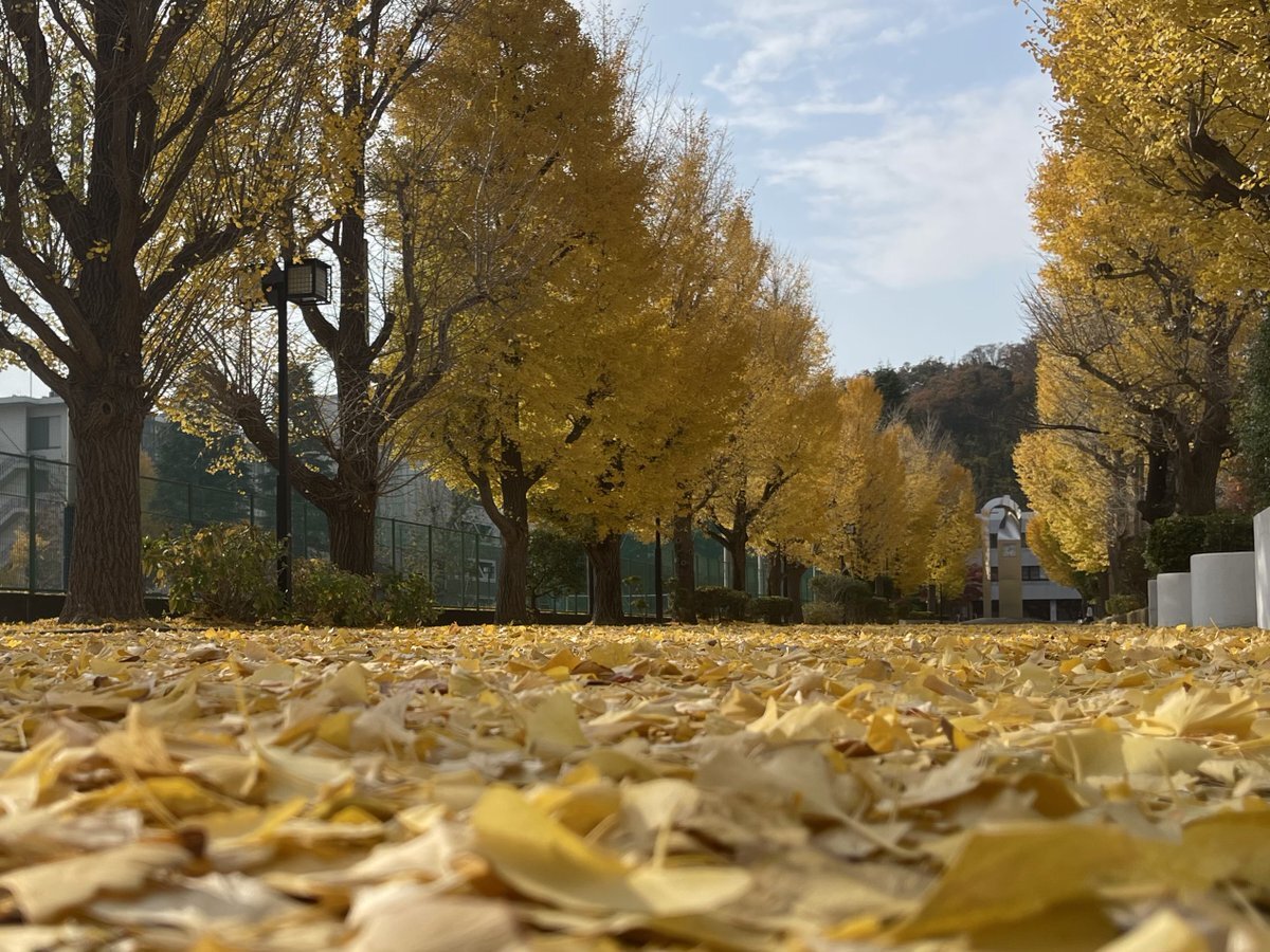 いちょうの葉っぱがだいぶ落ちてきましたね🍃 …知ってますか?いちょうの葉は油分を多く含むため、落ち葉の上を猛ダッシュしたりするとつるんと滑って危険ですよ⚠️ ましてや、今日のような雨降りの後はなおさら😱 #学術情報センター にお越しの際は、足元十分気を付けてくださいね🐾 #横浜市立大学