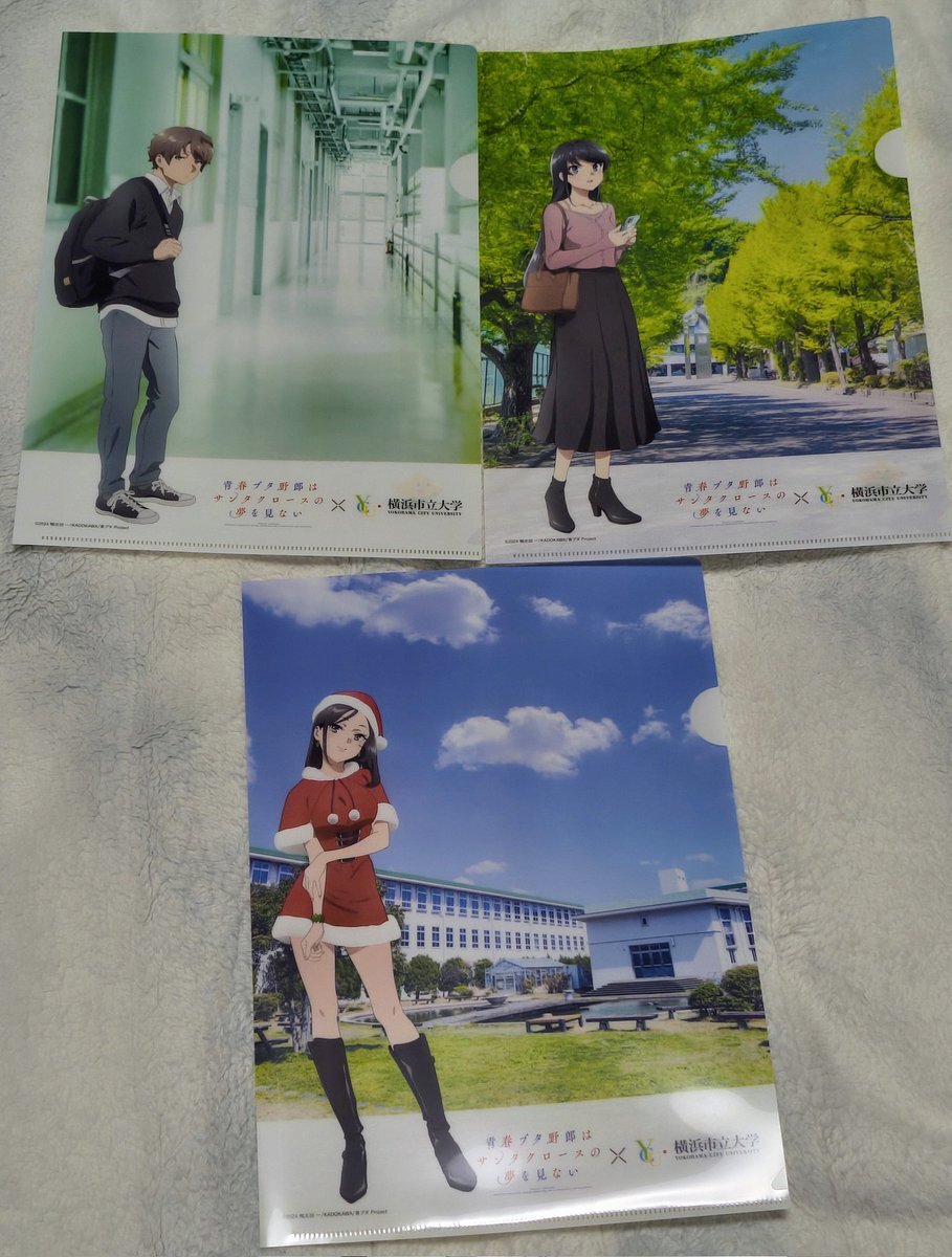 横浜市立大学×『青春ブタ野郎はサンタクロースの夢を見ない』特製クリアファイル(3枚1セット) 再販通知来るようにしててよかった〜 即申し込みました😂 おとといレターパックで到着 聖地の学校が直接コラボ商品出すの珍しいかも #横浜市立大学 #青ブタ #青春ブタ野郎はサンタクロースの夢を見ない pic.x.com/zjEp1riUko x.com/YCU_koho/statu…