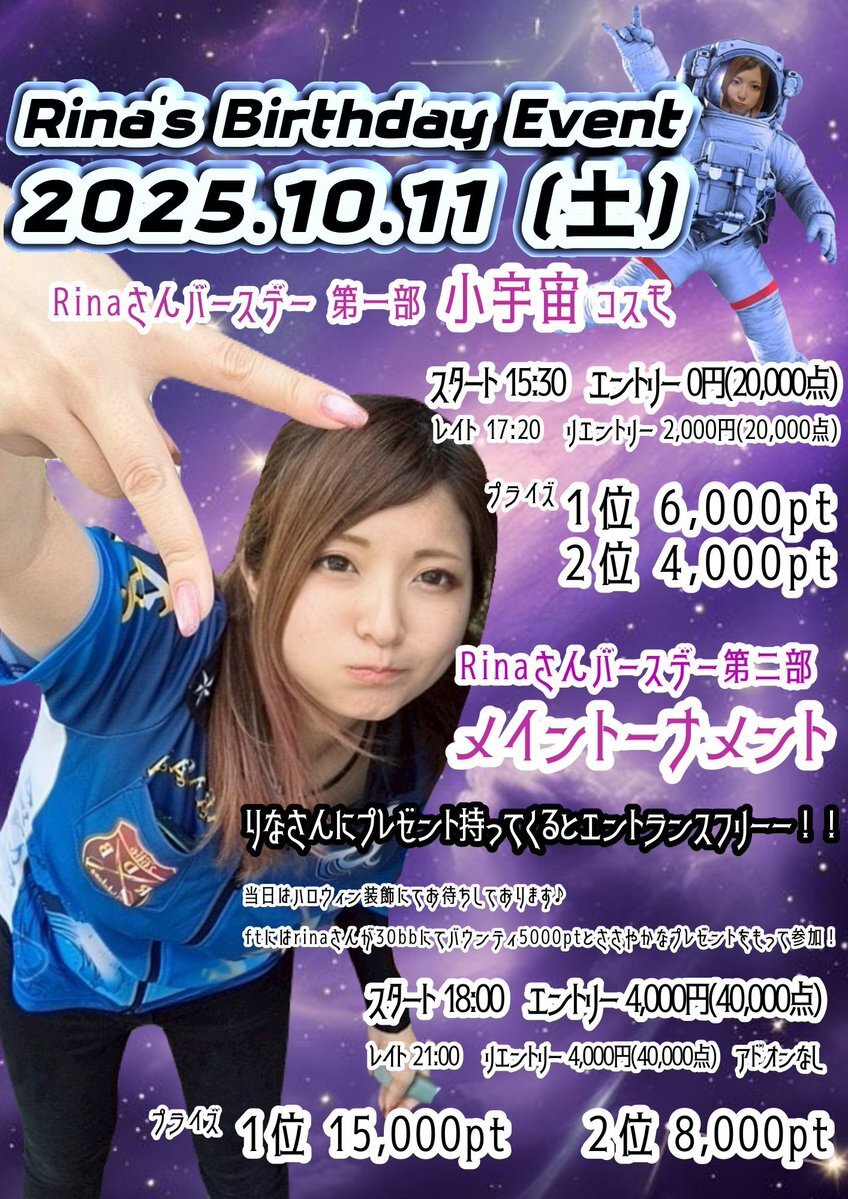 本日は!!rinaBDトーナメント!🎂 プレゼント持参でエントランスフリー🎁 ①フリーロール小宇宙(コスモ) なんとコミュニティカードが7枚まで!可能性は無限大🆚 s 15:30 c 17:20 pokerfans.jp/events/1753177 ②メイントーナメント! rinaバウンティつき!! s 18:00 c 21:00 pokerfans.jp/events/1743315