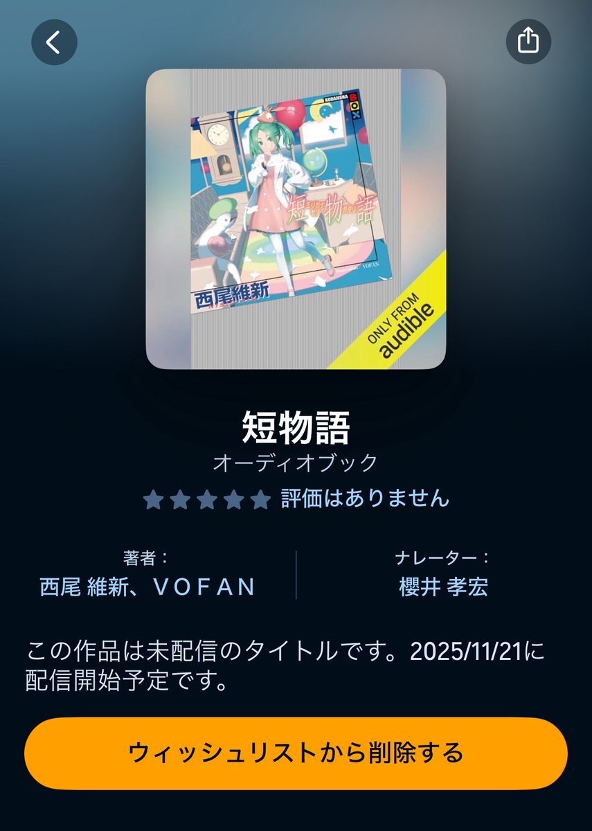 これはすごい😳 湊かなえ未発売最新作が最速でオーディブル配信中 「暁星」本買うより安く聴けるのすごい 👉amazon.co.jp/dp/B0FWLWKYHC/… 早見沙織さんと櫻井孝宏さんの声がまた良き とにかくプレビュー聴いてみて そういえば鬼滅の義勇さんとしのぶさんじゃん #早見沙織 #櫻井孝宏 #AD