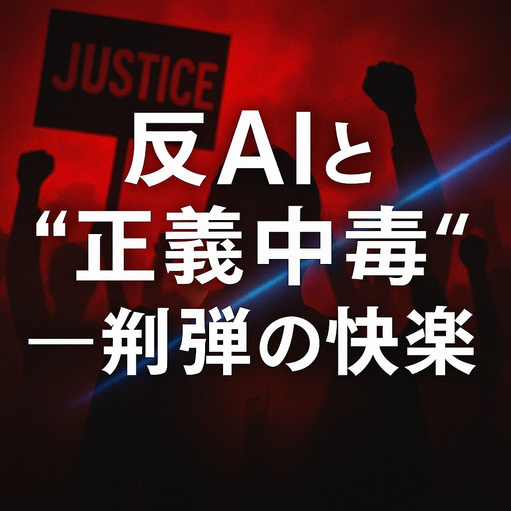 正義を掲げる声の裏に潜む“快楽”。 反AIの糾弾はなぜ止まらないのか? 社会心理から「正義中毒」の構造を解剖しました。 👉 詳細はこちら han-ai-observer.hatenablog.com/entry/2025/09/… #反AI #正義中毒 pic.x.com/zYEEtY9v3z