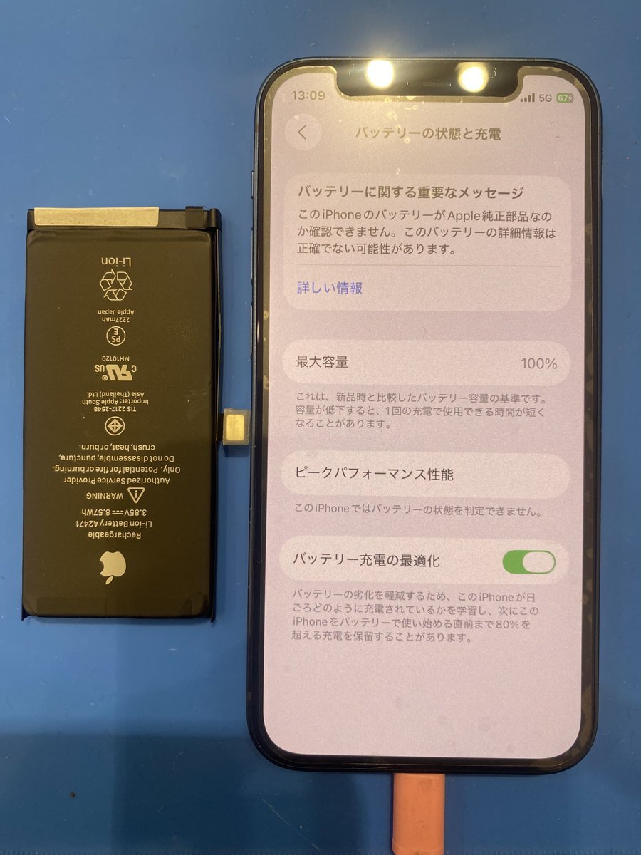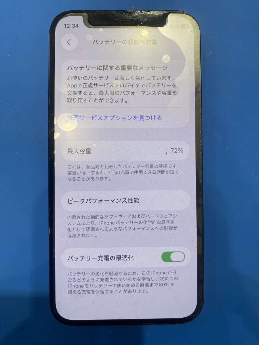 ケアモバ武生楽市です。本日はiPhone12miniのバッテリー交換のお客様が来店されました。最大容量の72%まで減っていたので、1日もたない状態だったと思います。バッテリー交換はケアモバにお任せくださいAndroidも対応しております!ご相談は0778-78-0806まで!#スマホ修理 #越前市 #武生 pic.x.com/vp8Z341GO7