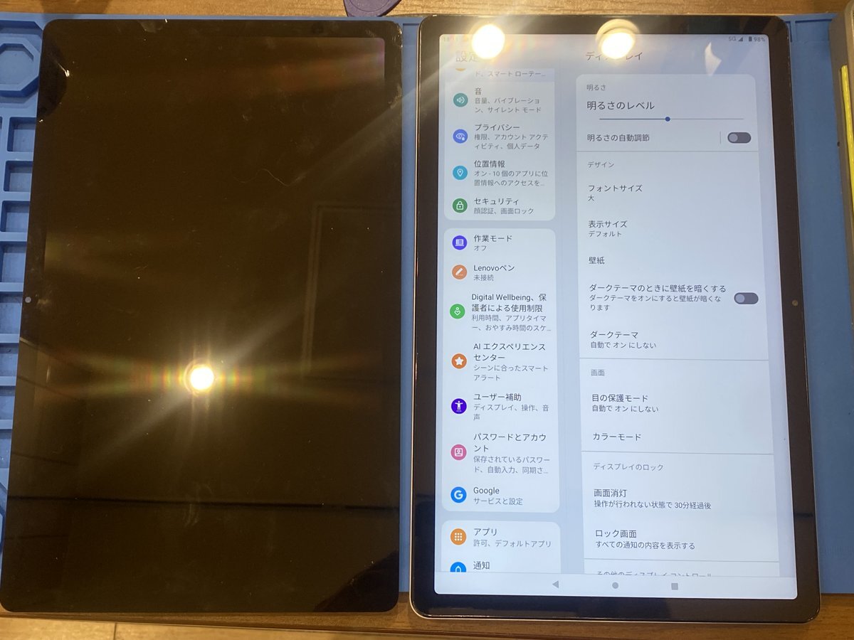 ケアモバ武生楽市です。本日はLENOVO Tab P11の画面交換のお客様ご来店。画面に細かい横線が入って画像がぶれたようになったり、一部カケが出ている状態でした。新しい画面でくっきりキレイに表示です。タブレットの画面がおかしい!そんな時も0778-78-0806まで!#スマホ修理 #越前市 #武生 pic.x.com/eZYpVLdSwu