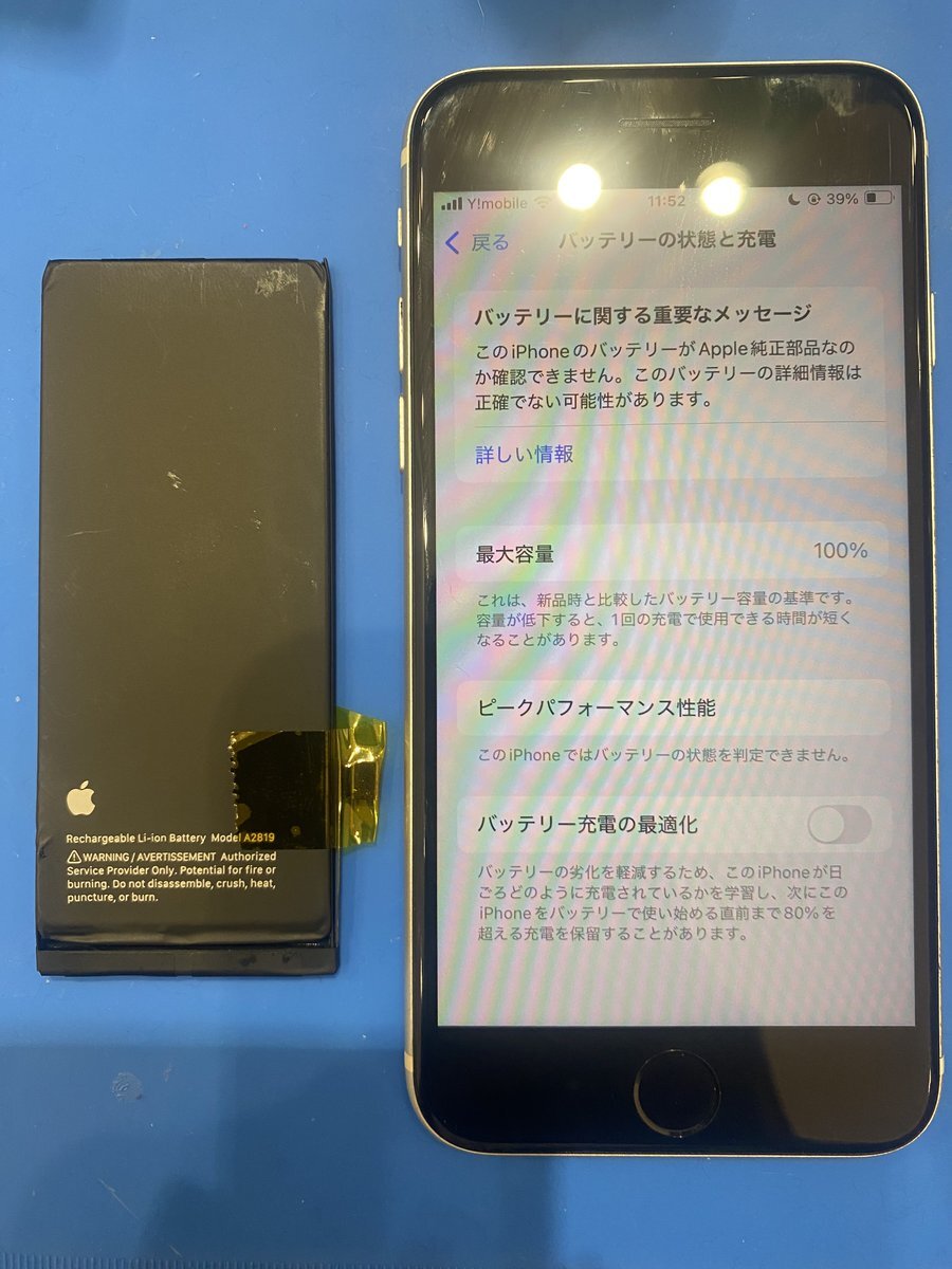ケアモバ武生楽市です。本日はiPhoneSE3のバッテリー交換のご紹介。78%だったのでちょうどよい交換時期ではないでしょうか。バッテリー交換はケアモバにお任せくださいAndroidも対応しております!ご相談は0778-78-0806まで!#スマホ修理 #越前市 #武生 pic.x.com/cjpeq16PhS