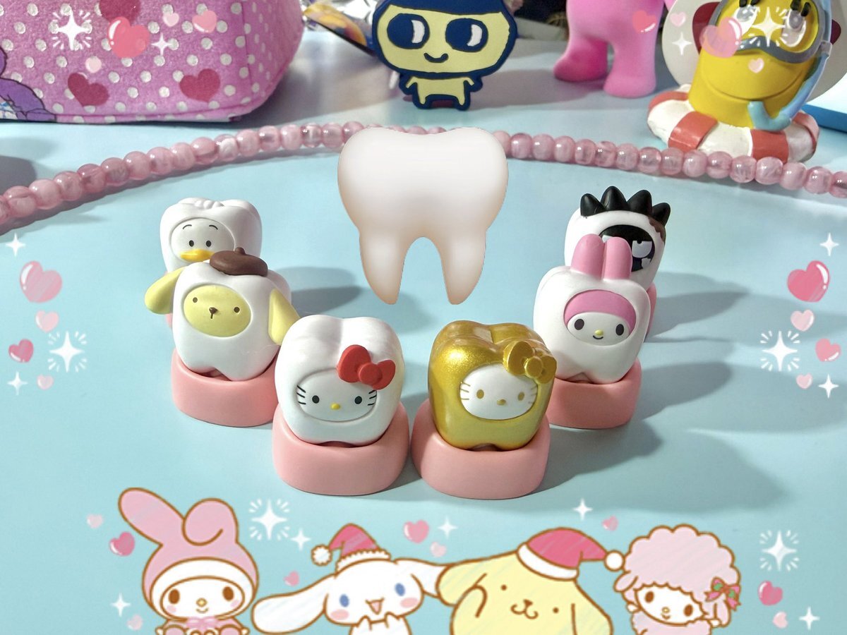 サンリオ みんなでなっちゃお! -歯- 🔻 楽天取り扱いショップ #ad a.r10.to/h5YQ9g 歯茎の台座付き…! 歯ブラシミニチュアと一緒にクリアポーチに詰めたい🪥(予約した)