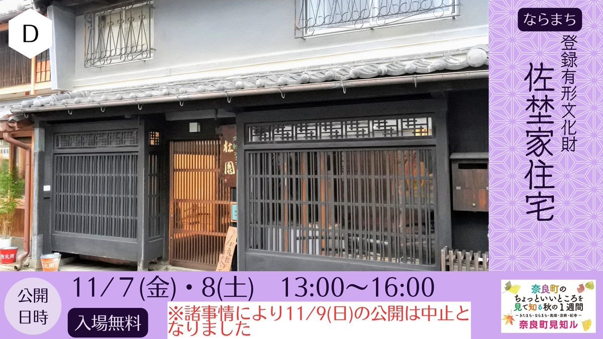 #奈良町見知ル2025 本日11/7 特別公開実施スポットは #佐埜家住宅 ←本日から公開✨ #今西家書院 #志賀直哉旧居 です #奈良町物語館 では奈良町を愛するボランティアスタッフおすすめのまちあるき情報をご紹介中 トイレ休憩もできますのでぜひお気軽にお立ち寄りください #奈良町観光 #歴史散策 pic.x.com/qrFOivqWzL
