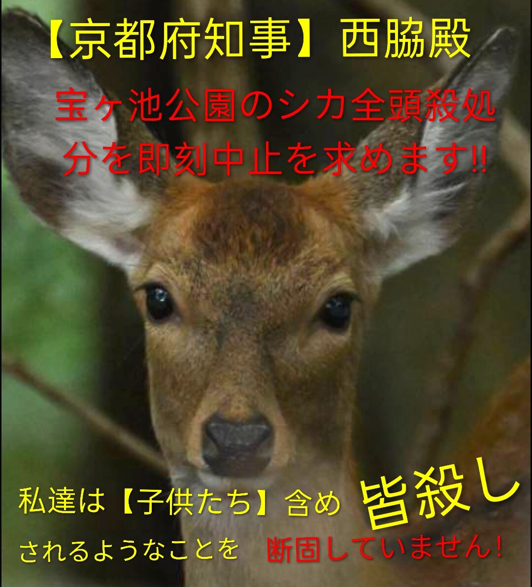 \拡散にご協力ください‼️💢/ 京都宝ヶ池公園のシカさん、子鹿含め全頭殺処分にされます!!! 【捕殺期間】11.15〜12.31 【アクション】 (京都)西脇府知事、松井市長に 捕殺中止のトップダウン指示を強く要求してください‼️ 🔴京都府 電話:075-411-5000 FAX:075-411-5001