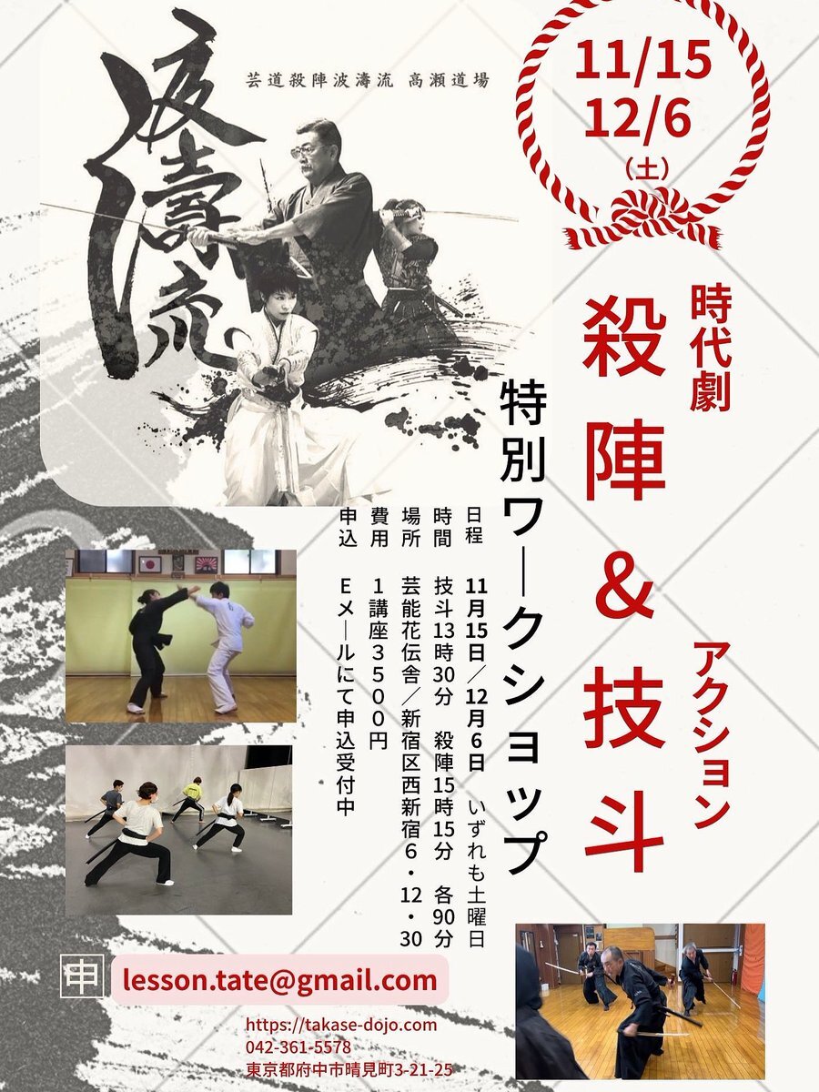 11/17(月)の #殺陣工房 🌟次世代育成企画 19:00~20:30 イベント殺陣 若手を即戦力に❗ 次世代メンバー募集! #新宿 #高田馬場 #殺陣 #殺陣教室 pic.x.com/J2IUj20kQC x.com/tatekohbo888/s…