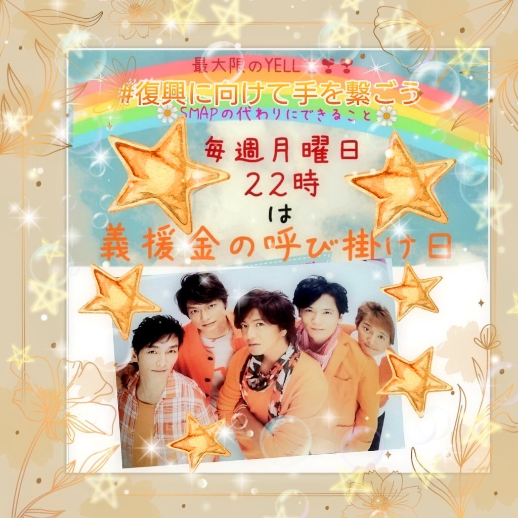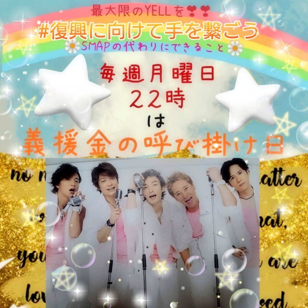 皆様からの暖かい\♡LOVE♡/を❣❣ #震災復興 #義援金にご協力おねがいします 🌟🌟🌟🌟🌟🌠 東北魂義援金様HP grapecom.jp/information/ne… 熊本城 復旧・復元 castle.kumamoto-guide.jp/fukkou/ #SMAPのためにできること#復興に向けて手を繋ごう 👋 #毎週 #月曜日 #22時 #スマスマ 時間💙❤💗💛💚 pic.x.com/SYe54X3L4Z