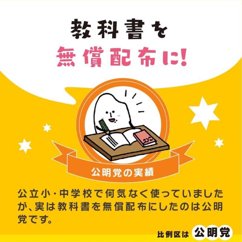 【公明党の実績!】 #教科書#無償 配付に! #比例区#公明党pic.x.com/PMyKDHp1A9