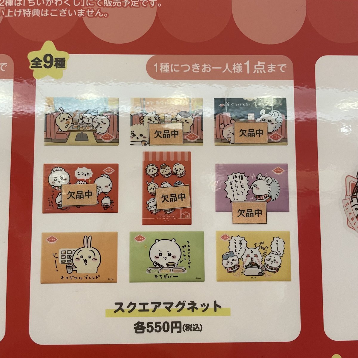 常設店「ちいかわレストラン」 【グッズ欠品情報】 ・スクエアマグネット(集合) 上記の商品は欠品となっております。 再入荷の際は、本アカウントでお知らせいたします。 #ちいかわレストラン #ちいかわ #池袋parco pic.x.com/fZlSQmnE5k